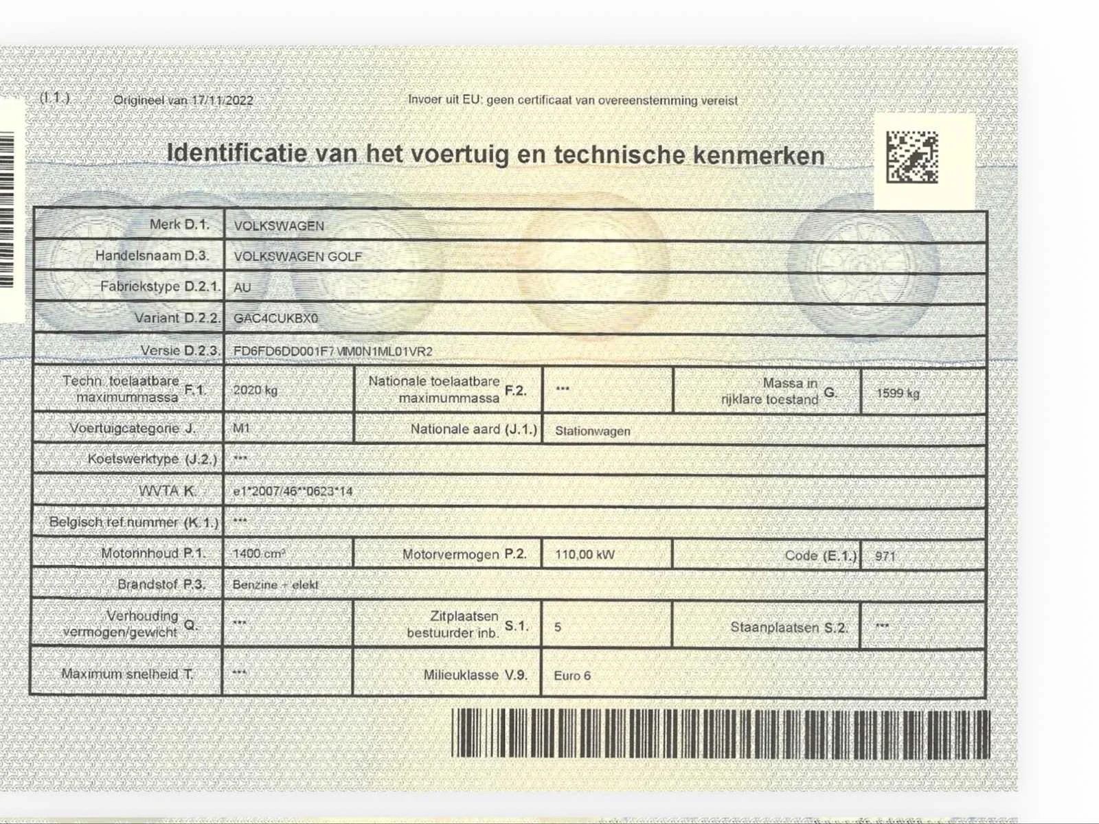 De wagen in geherprogrammeerd voor meer vermogen: 384 pk (Tuning Stage 1 & Stage 2). Servicegeschiedenis: Compleet en leverbaar, met de originele schampalment. Prestaties en verbeteringen: . Fase 1 Chiptuning op de 1.4 TSI GTE motor. Stage 2 DSG Tuning voor een betere respons van de transmissie. TTE290 Turbo voor betere prestaties. Nieuw accupakket vervangen bij Volkswagen. K&N prestatiefilter voor betere luchtinlaat. Roestvrijstalen uitlaat (RVS) met carbon uitlaten en klepbediening. Originele uitlaat meegeleverd met het voertuig. Dubbele sportkatalysator en 2 sportschokdempers achter. Sportonderstel: Eibach-veren + Bilstein-schokdempers, gehomologeerd, voor een dynamisch en stabiel rijgedrag. Leder en Alcantara stuurwiel voor optimale grip. Digitale klokken en Virtual Cockpit volledig vervangen. Verbeterde navigatie: Het navigatiesysteem is vervangen door een groter, capabeler model. Ontwerp en buitenuitrusting: . Maxton Design frontsplitter voor een sportievere look. Rieger Sport diffusor achter. Gefilmd dak en getinte achterruiten. Comfort en technologie: . Automatische airconditioning. . Origineel navigatiesysteem. . Cruisecontrol. Stuurbekrachtiging. Metallic lak. Lichtmetalen velgen. Parkeersensoren voor en achter. Achteruitkijkcamera. Virtual Cockpit en digitale klokken vervangen door een modern display. Focaal audiosysteem voor een uitzonderlijke geluidskwaliteit. Extra accessoires: Twee opladers inbegrepen: een oplader voor huishoudelijk stopcontact en een netoplader om de batterij gemakkelijk thuis of op het werk op te laden. . Nee Merk: Volkswagen Model: Golf GTE 1.4 TSI Hybrid Bouwjaar: 2015 Afgelezen kilometerstand: 202194km Cilinderinhoud: 1400cc Vermogen (kW): 110kW Brandstof: Benzine + elektrisch Chassisnummer: WVWZZZAUZFW808090 Datum eerste toelating: 07/07/2015 Aantal zitplaatsen: 5 Kleur: Champange Transmissie: Automaat DSG Emissieklasse: Euro 6 Aantal deuren: 5 Nationaliteit documenten: Belgische Vavato voert geen technische keuring uit.: waar Airconditioning: true Navigatie: true LED-koplampen: true