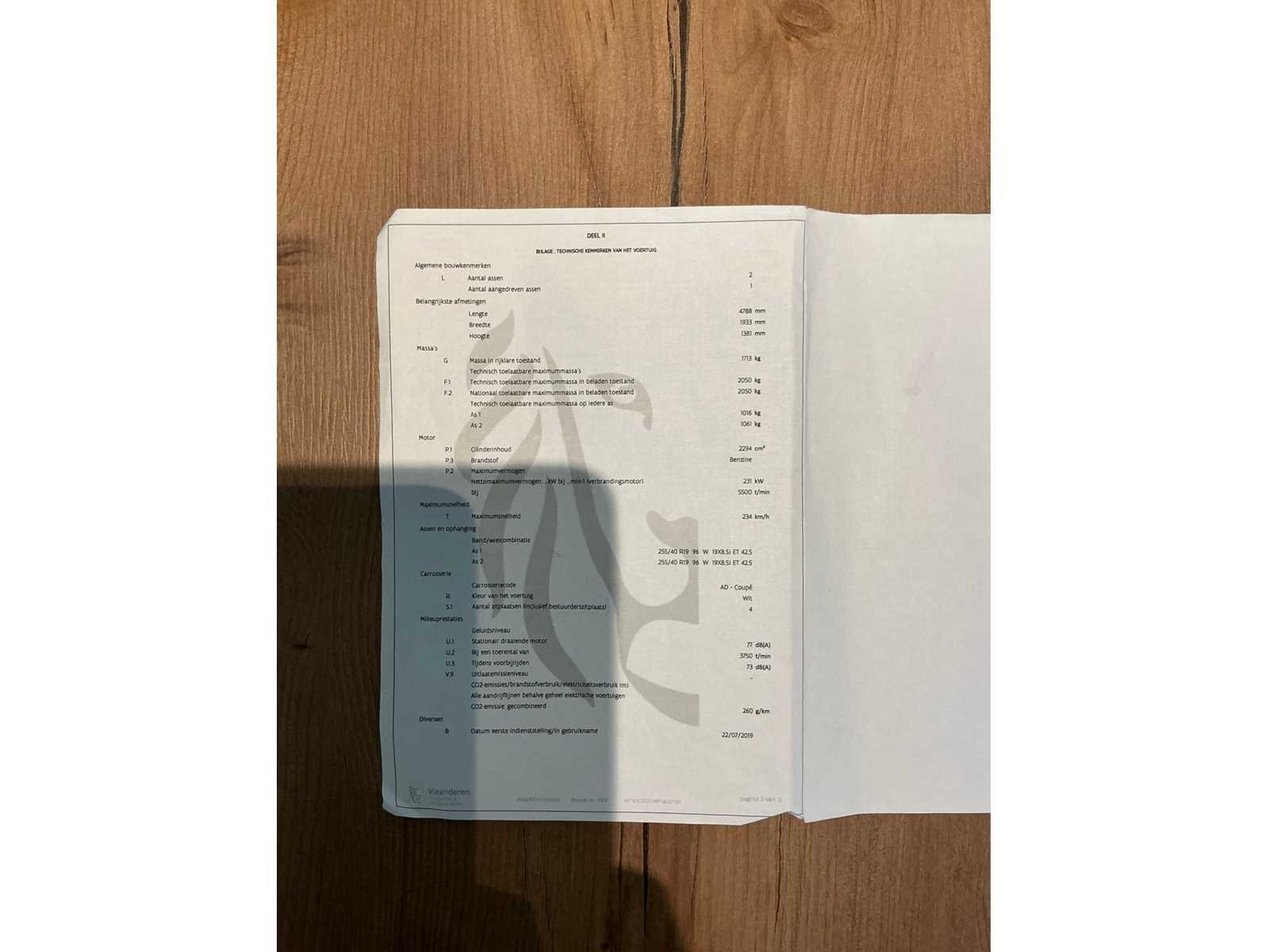 USA import de wagen heeft en car pass sedert 09/11/2021 is de wagen in België - Start en rijd zeer goed No Merk: Ford Model: MUSTANG FASTBACK Afgelezen kilometerstand: 57187km Cilinderinhoud: 2294cc Vermogen (kW): 231kW Brandstof: benzine Chassisnummer: 1FA6P8TH7J5175099 Datum eerste toelating: 22/07/2019 Aantal zitplaatsen: 4 Kleur: Wit Transmissie: Automaat Aantal deuren: 2 Aantal sleutels: 2 Ledig gewicht: 2050kg Carrosserie: Coupé Nationaliteit documenten: Belgische Gelijkvormigheidsattest aanwezig: true Carpass: true Start en rijdt: Start en rijdt Keuringsrapport geldig tot: 24/07/2026 Airconditioning: true Navigatie: true Xenon verlichting: true Leder bekleed: true Inschrijvingsbewijs - deel 1 : Aanwezig Inschrijvingsbewijs - deel 2: Aanwezig