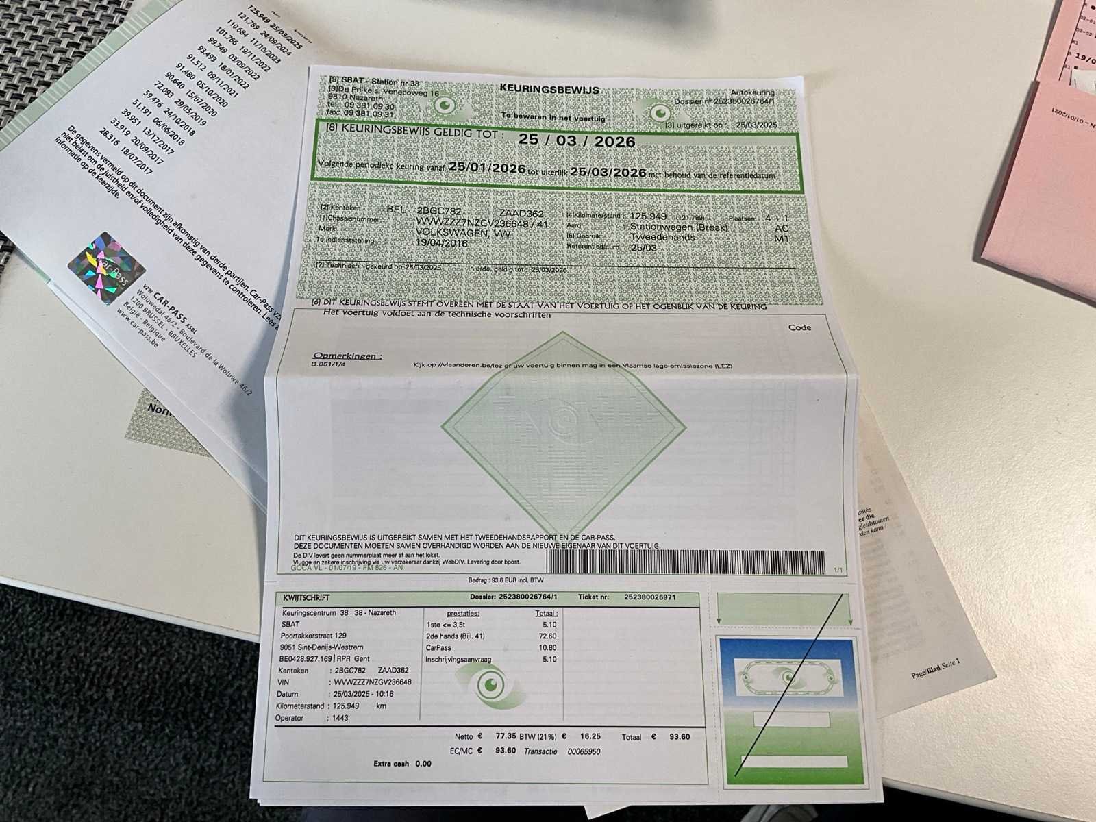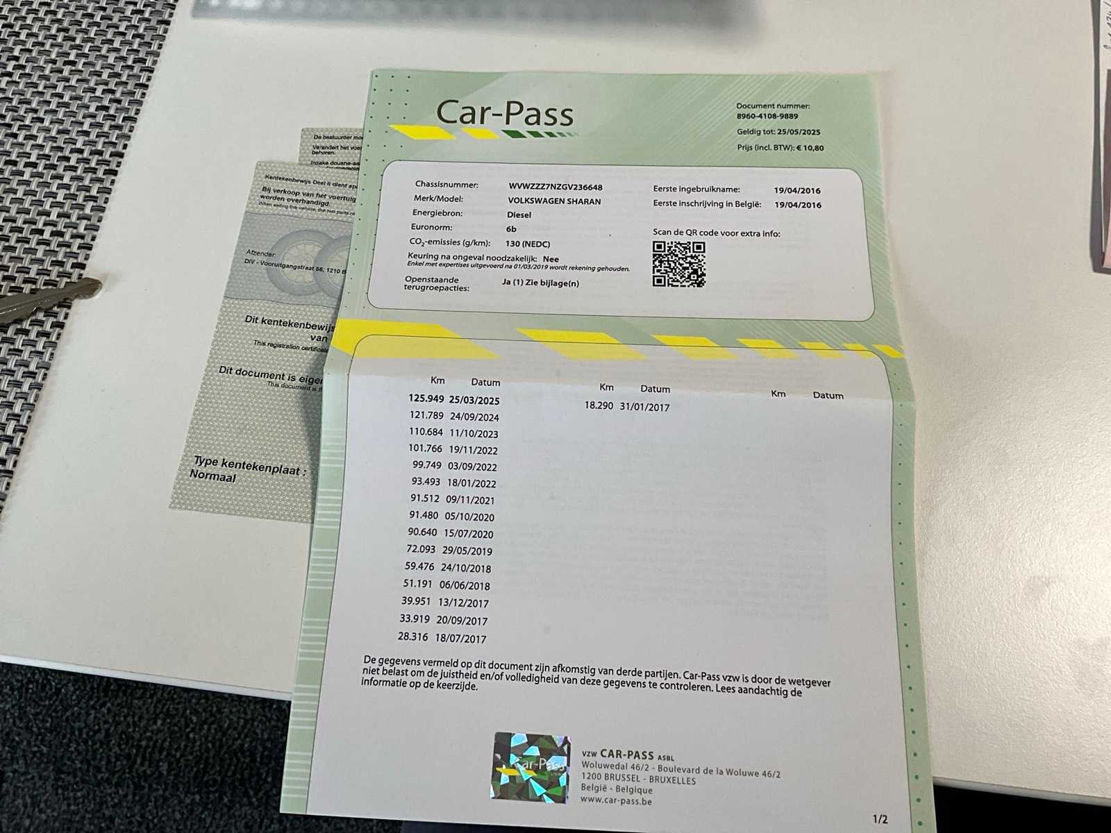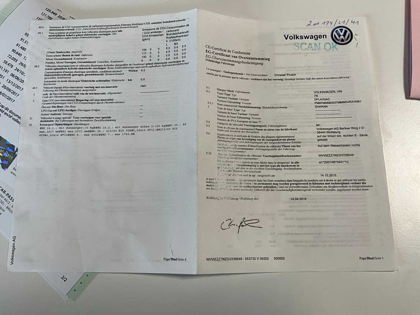 De wagen start,rijdt en draait soepel. Nee Merk: Volkswagen Model: Sharan Bouwjaar: 2016 Afgelezen kilometerstand: 127273km Cilinderinhoud: 1968cc Vermogen (kW): 110kW Brandstof: diesel Chassisnummer: WVWZZZ7NZGV236648 Datum eerste toelating: 19/04/2016 Aantal sleutels: 2 Nationaliteit documenten: Belgisch Start en rijdt: Ja startinformatie : Start en rijdt Inschrijvingsbewijs - deel 1 : Aanwezig Inschrijvingsbewijs - deel 2: Aanwezig