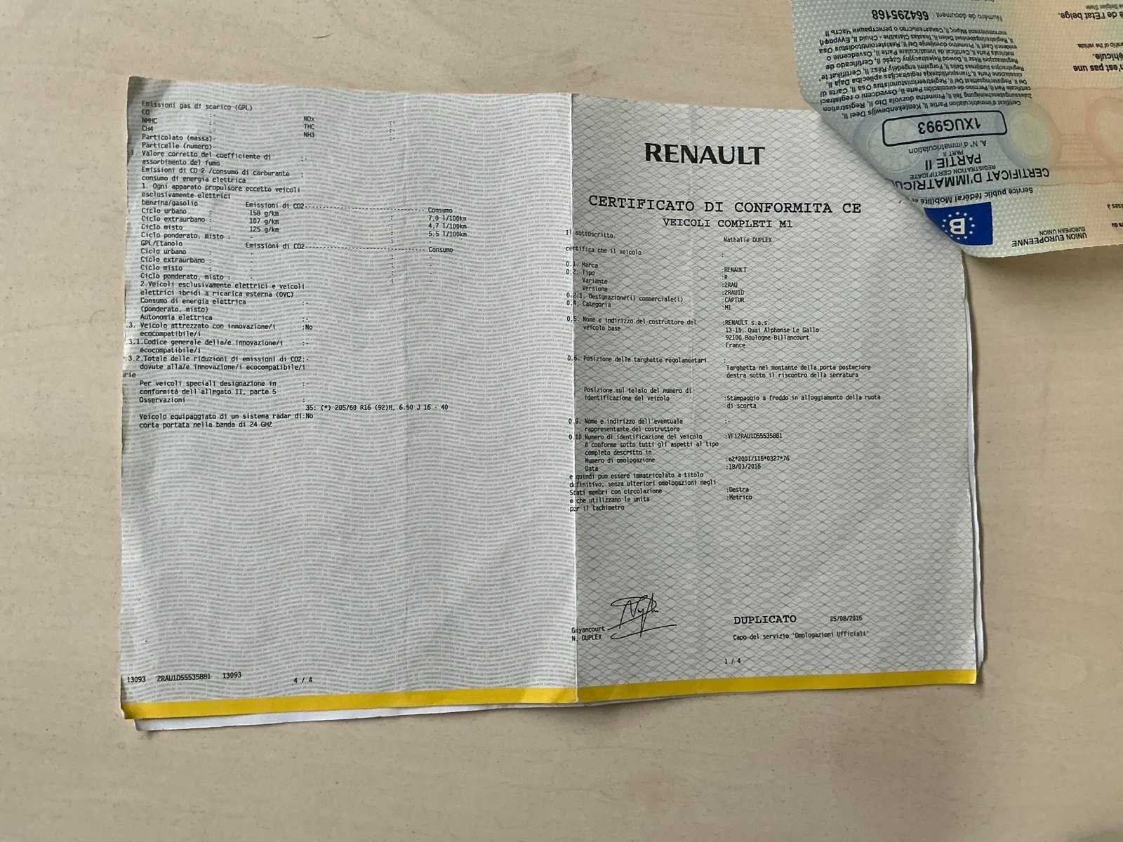 Automaat, zwart met wit dak, centrale vergrendeling, airco, navi, airco, muziek, Nee Merk: Renault Model: Captur Bouwjaar: 2016 Afgelezen kilometerstand: 129847km Cilinderinhoud: 1197cc Vermogen (kW): 87kW Brandstof: Benzine Chassisnummer: VF12RAU1D55535881(01) Datum eerste toelating: 17/06/2016 Aantal zitplaatsen: 5 Kleur: Zwart Transmissie: Automaat Aantal sleutels: 2 Nationaliteit documenten: België Gelijkvormigheidsattest aanwezig: true Start en rijdt: Ja Navigatie: true Inschrijvingsbewijs - deel 1 : Aanwezig Inschrijvingsbewijs - deel 2: Aanwezig