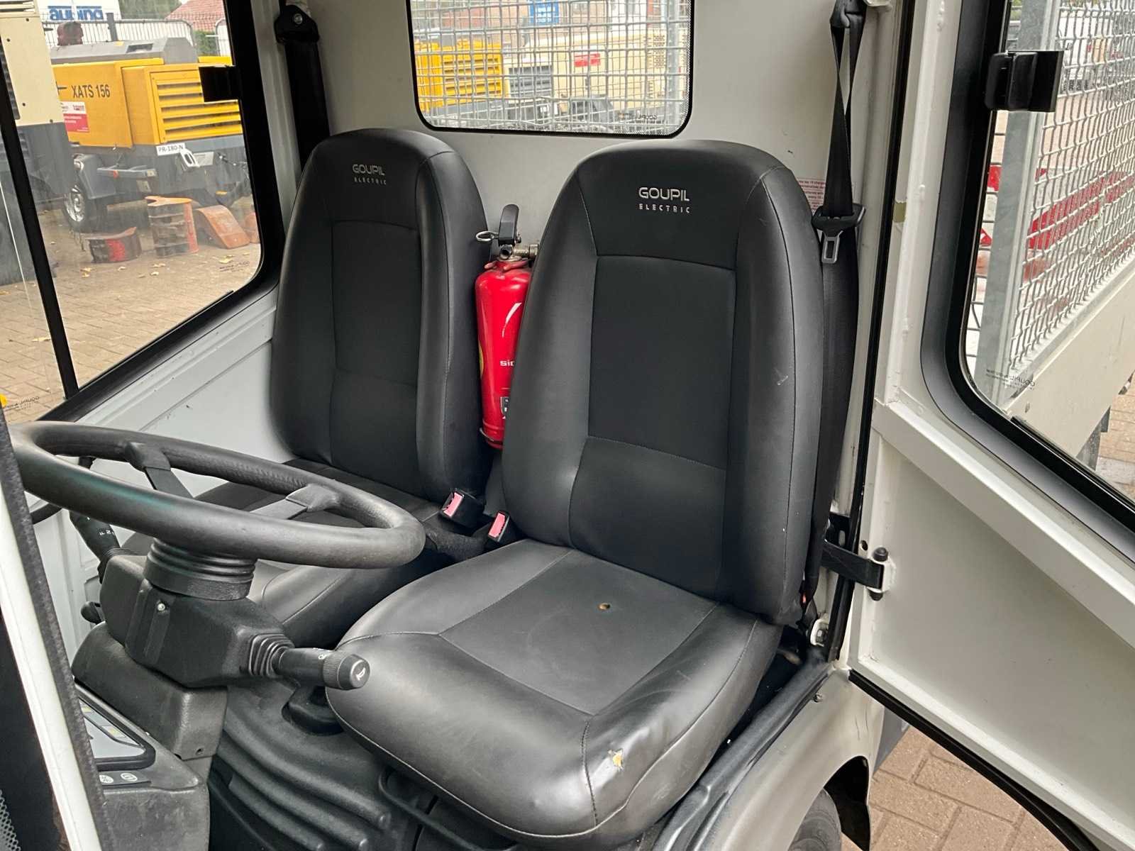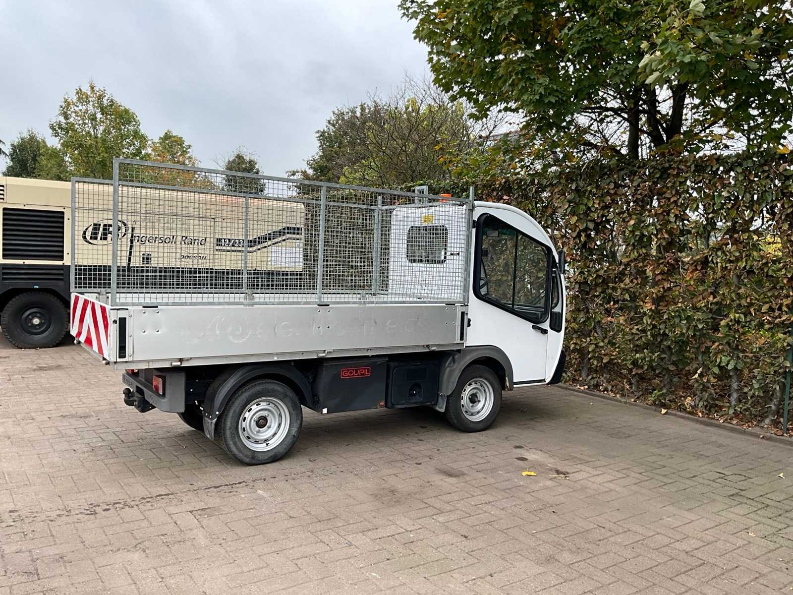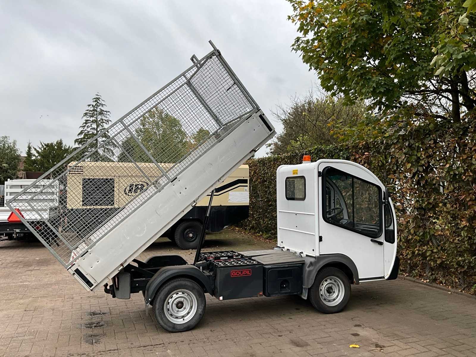 Opties: hydraulische kipper - afneembare gegalvaniseerd hekken - radio - trekhaak - elektrische verwarming- voorruit verwarming- LED flits licht - 48V aansluiting - voetgangers signaal - verbreden ruiten - 2 materiaal koffers op chassis. Afmetingen bak 260x125x110 cm. Nee Merk: Goupil Type: G3-2L kipper Bouwjaar: 2010 Chassisnummer: VRWG3LB4C00000039