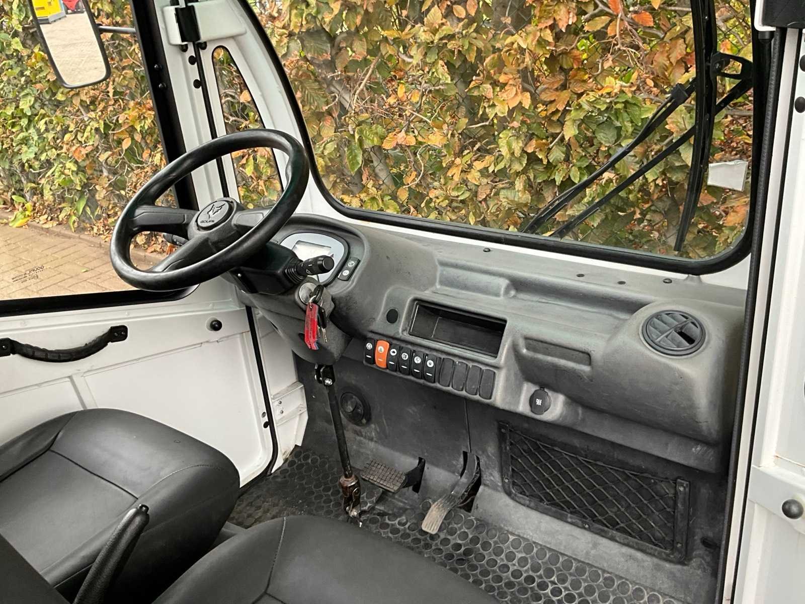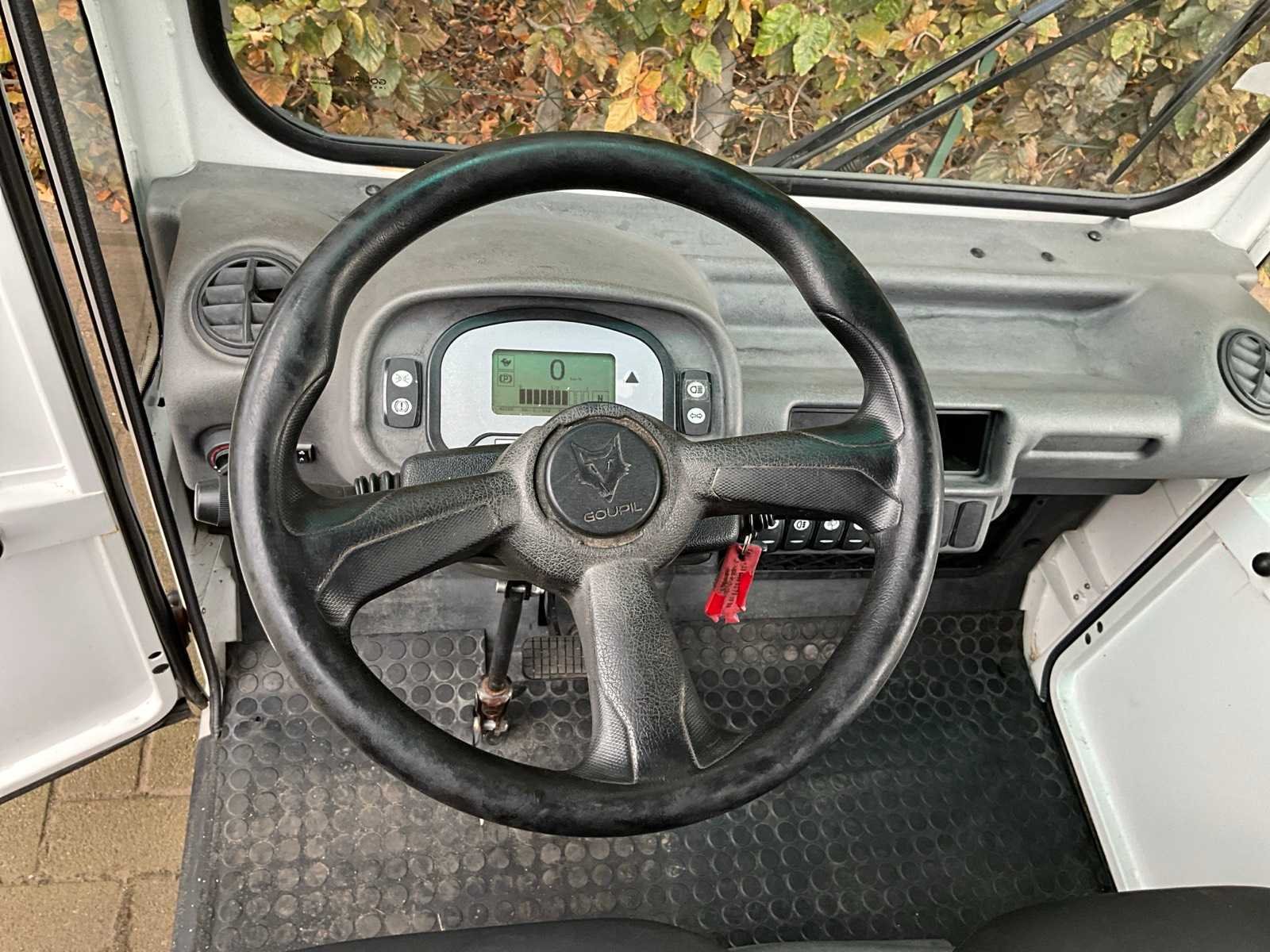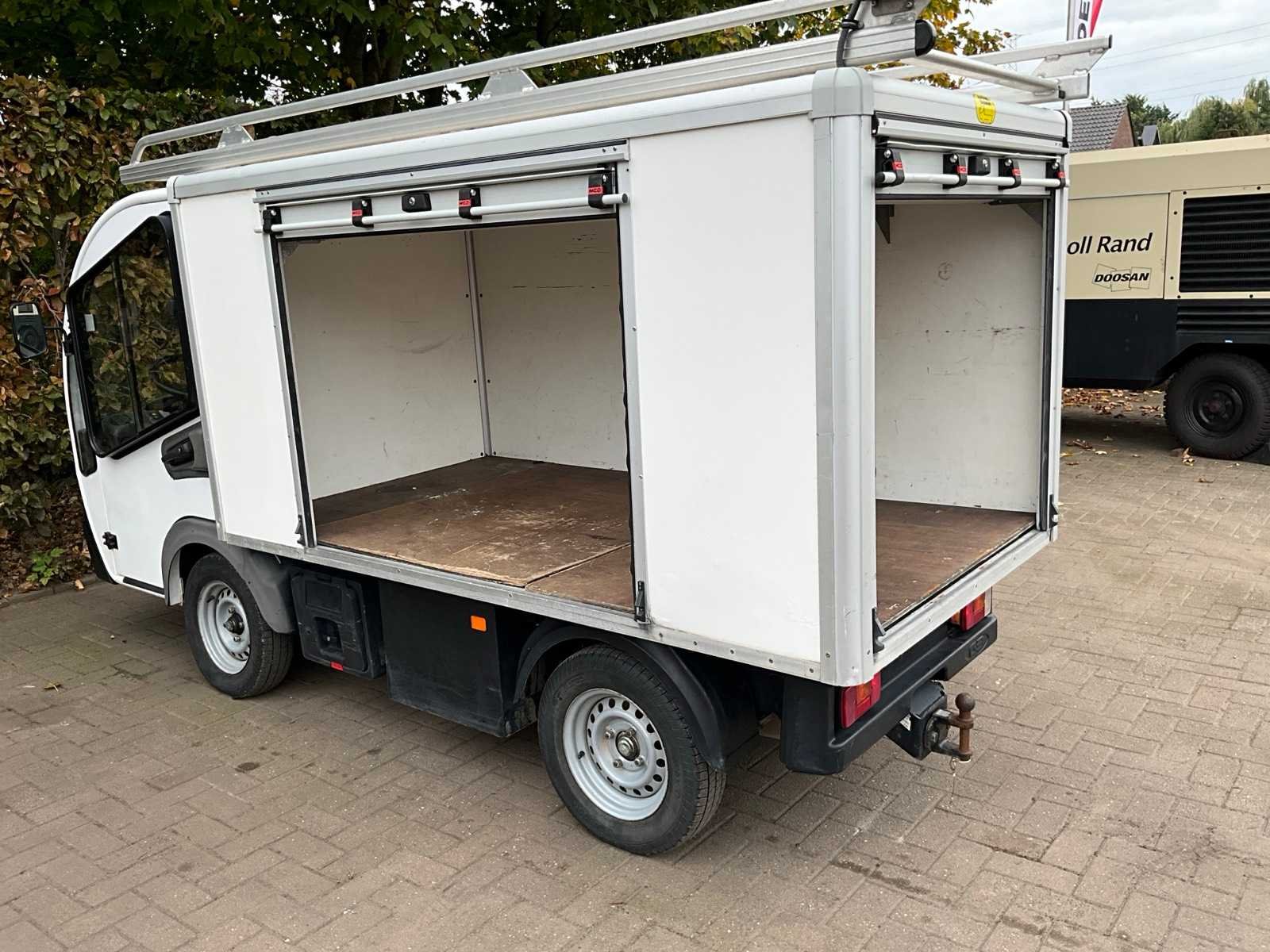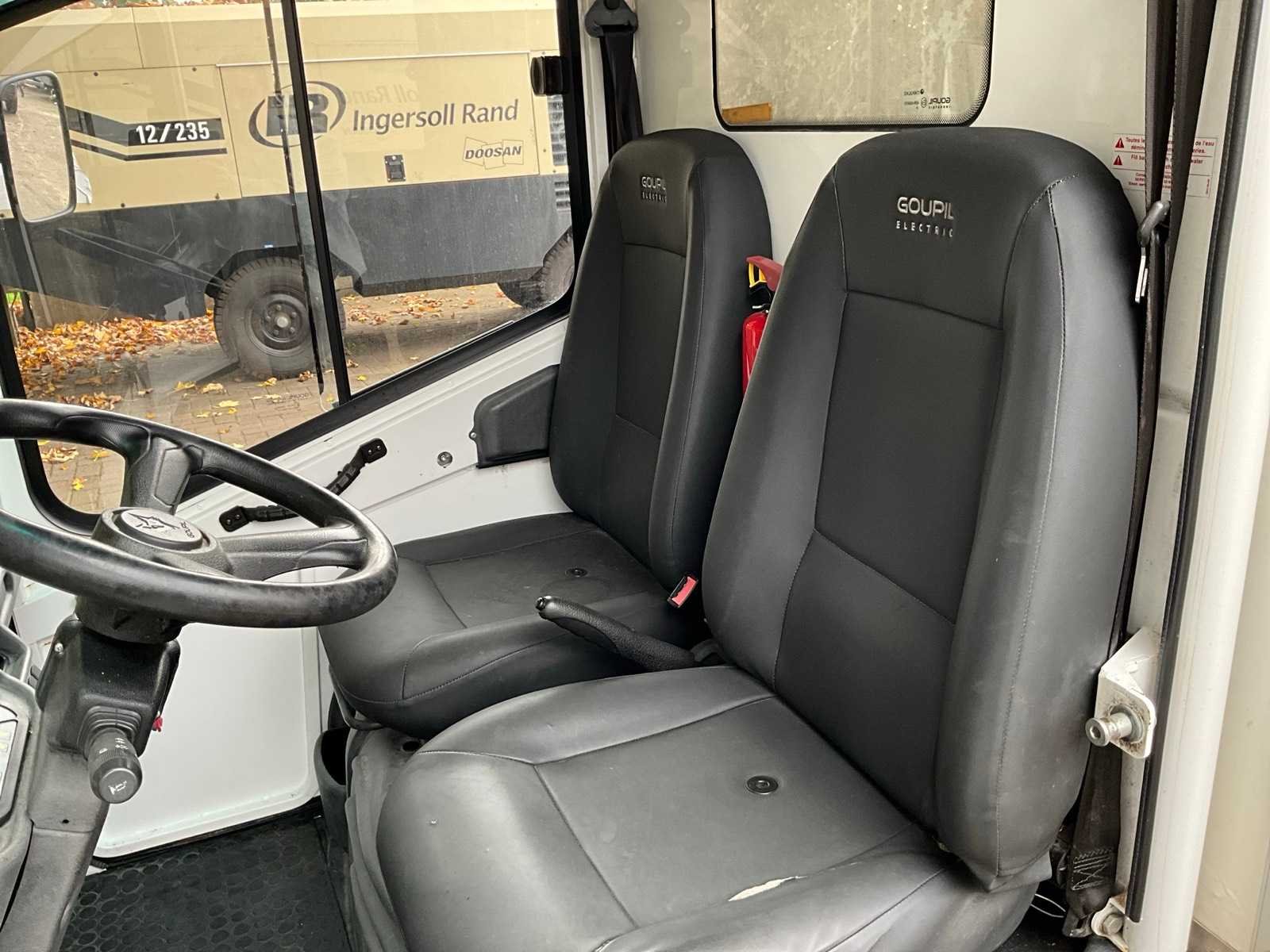 Opties: Van box met 2 afsluitbare rolluiken - dakdrager met werklicht - trekhaak - Webasto verwarming - voetgangers signaal - verwarmde voorruit - verbrede ramen - 2 werkkoffers op chassis. Afmetingen laadruimte 240x125x120 cm. Nee Merk: Goupil Type: G3-2L Van Chassisnummer: VRWG3LNCCD0000587