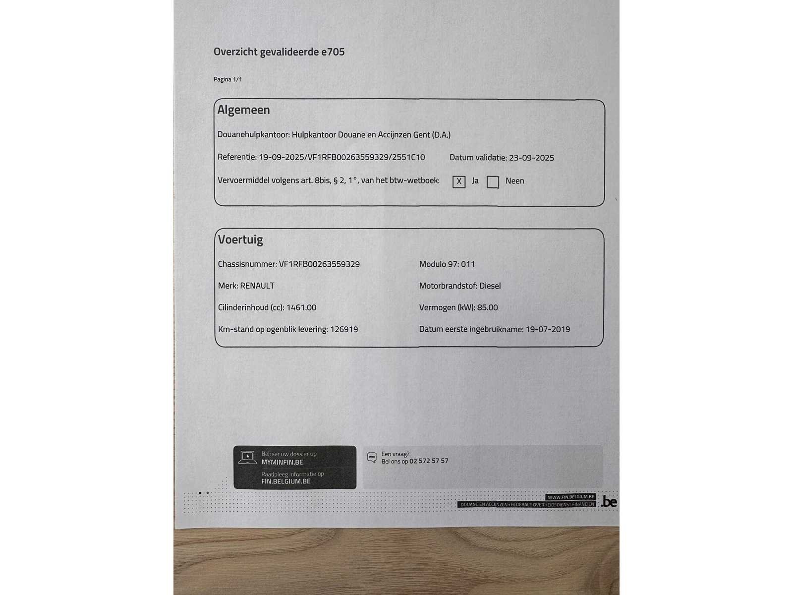 E705 is aanvaard, auto kan dus direct gekeurd en ingeschreven worden. Nee Merk: Renault Model: Megane Bouwjaar: 2019 Cilinderinhoud: 1598cc Vermogen (kW): 70kW Brandstof: Diesel Chassisnummer: VF1FRB00265359239 Datum eerste toelating: 19/07/2019 Aantal zitplaatsen: 5 Transmissie: Automaat Emissieklasse: Euro 6b Aantal deuren: 5 Start en rijdt: Ja startinformatie : Start & rijdt Vavato voert geen technische keuring uit.: true Airconditioning: true Navigatie: true
