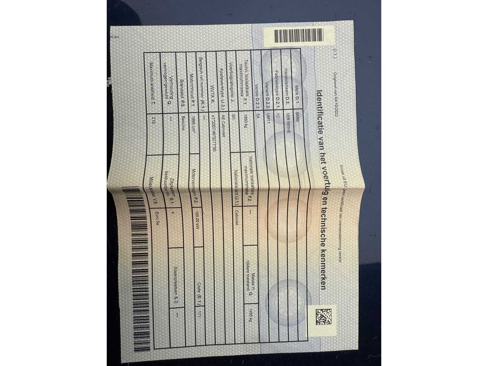 LET OP, motor start NIET. Nee Merk: BMW Model: 1 serie Bouwjaar: 2009 Afgelezen kilometerstand: 190000km Cilinderinhoud: 1995cc Vermogen (kW): 105kW Brandstof: Benzine Chassisnummer: WBAUM11000VL92942 Datum eerste toelating: 19/10/2009 Aantal zitplaatsen: 4 Transmissie: Handgeschakeld Emissieklasse: Euro 5a Aantal deuren: 3 Nationaliteit documenten: Belgisch Start en rijdt: Nee startinformatie : Start en rijdt niet Vavato voert geen technische keuring uit.: true Airconditioning: true Xenon verlichting: true Inschrijvingsbewijs - deel 1 : Aanwezig Inschrijvingsbewijs - deel 2: Aanwezig