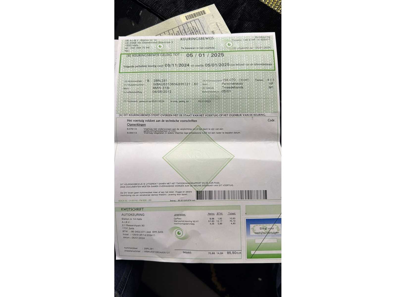 LET OP, auto heeft motorproblemen en start NIET. Nee Merk: BMW Model: 318I Bouwjaar: 2012 Afgelezen kilometerstand: 160000km Cilinderinhoud: 2000cc Vermogen (kW): 105kW Brandstof: Benzine Chassisnummer: WBAUS31060A835121 Datum eerste toelating: 04/05/2012 Aantal zitplaatsen: 5 Kleur: Wit Transmissie: Handgeschakeld Emissieklasse: Euro 5 Aantal deuren: 5 Nationaliteit documenten: Belgisch Start en rijdt: Nee startinformatie : Start & rijdt niet. Vavato voert geen technische keuring uit.: true Airconditioning: true Inschrijvingsbewijs - deel 1 : Aanwezig Inschrijvingsbewijs - deel 2: Aanwezig