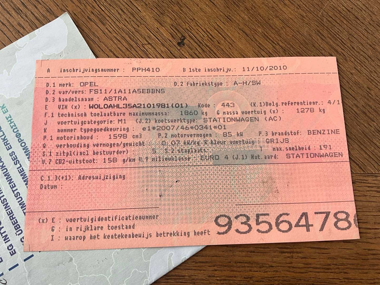 Nee Merk: Opel Model: Astra Bouwjaar: 2010 Brandstof: benzine Chassisnummer: 1981