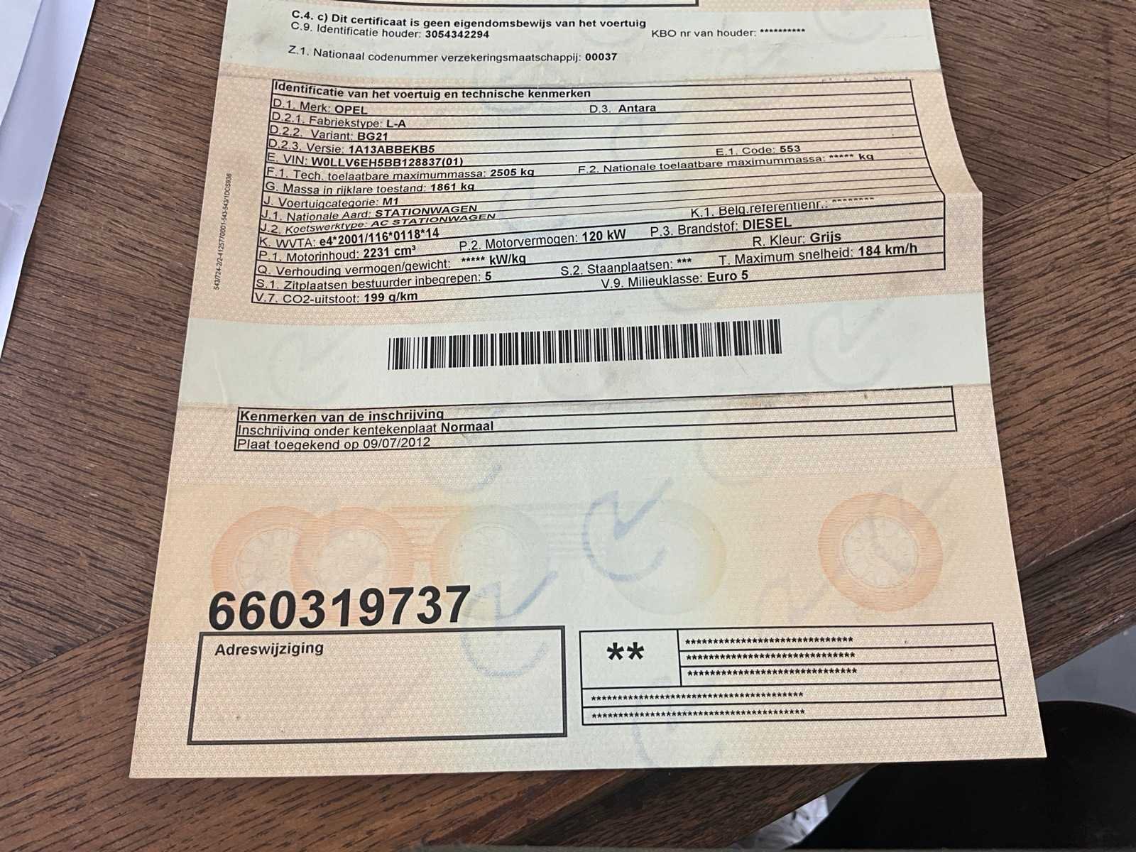 Nee Merk: Opel Model: Antara Bouwjaar: 2012 Brandstof: diesel Chassisnummer: 837 Transmissie: Automaat
