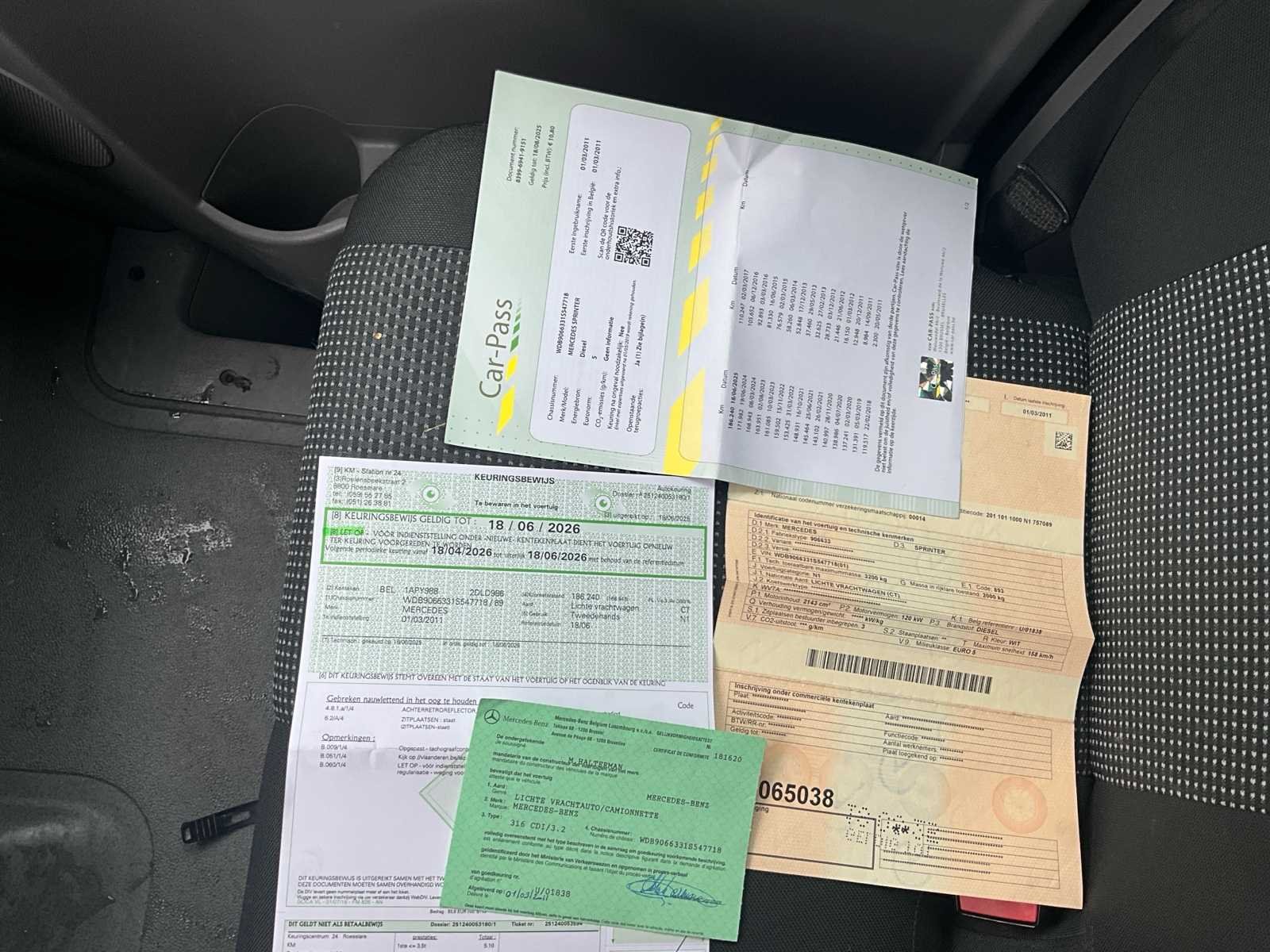 No Merk: Mercedes Model: Sprinter Bouwjaar: 2011 Afgelezen kilometerstand: 187923km Cilinderinhoud: 2143cc Vermogen (kW): 120kW Brandstof: Diesel Chassisnummer: WDB90667331S547718 Datum eerste toelating: 01/03/2011 Aantal zitplaatsen: 3 Maximaal trekgewicht ongeremd: 750kg Maximaal trekgewicht geremd: 5200kg Kleur: Wit Transmissie: Hangeschakeld Aantal deuren: 4 Aantal sleutels: 1 Ledig gewicht: 2230kg Nationaliteit documenten: BE Start en rijdt: Ja Keuringsrapport geldig tot: 18/06/2026 startinformatie : Start en rijdt Zichtbare schade: Aanwezig, zie foto’s Inschrijvingsbewijs - deel 1 : Aanwezig Inschrijvingsbewijs - deel 2: NVT