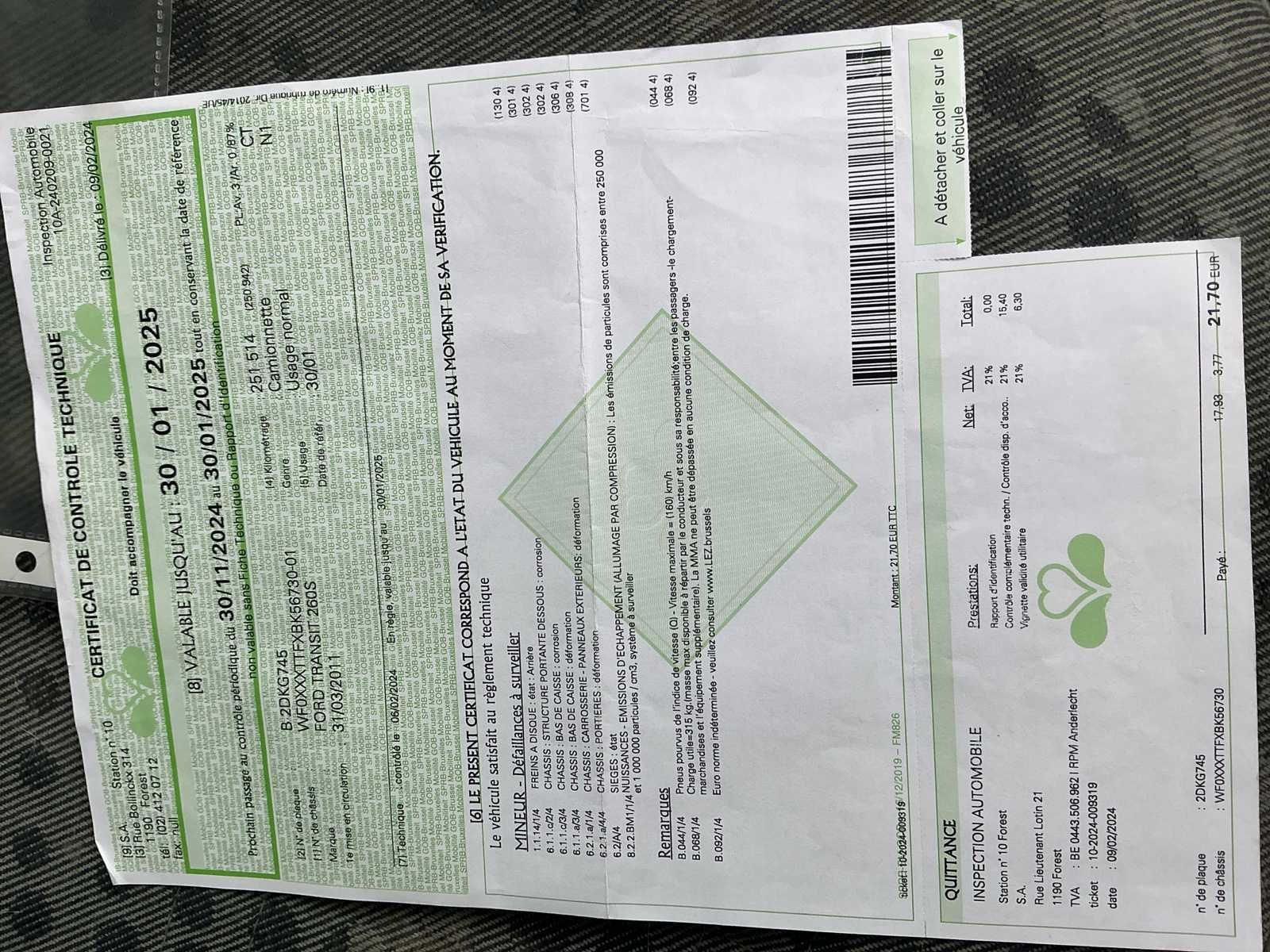 Ford Transit uit 2011 met 289647 kilometers op de teller. Start en rijdt mits nieuwe batterij. Euro 5. Carrosserie schade rondom. Zonder inhoud van laadruimte. No Merk: Ford Type: Transit 260S Bouwjaar: 2011 Chassisnummer: WFOXXXTTFBK56730 Afgelezen kilometerstand: 289647km Cilinderinhoud: 2200cc Vermogen (kW): 63kW Brandstof: Diesel Datum eerste inschrijving: 31/03/2011 Transmissie: Manueel Aantal zitplaatsen: 3 Kleur: Grijs Nationaliteit documenten: België Emissieklasse: Euro 5 Startinformatie: Start en rijdt