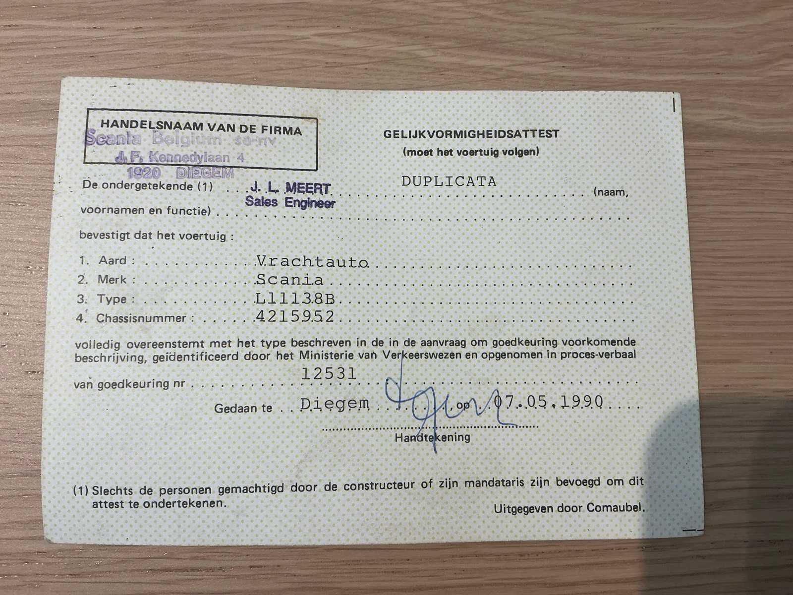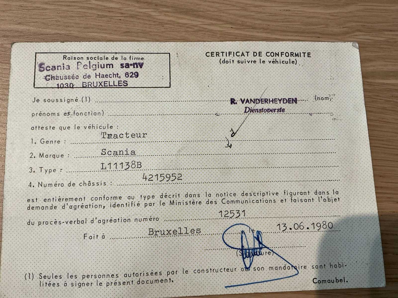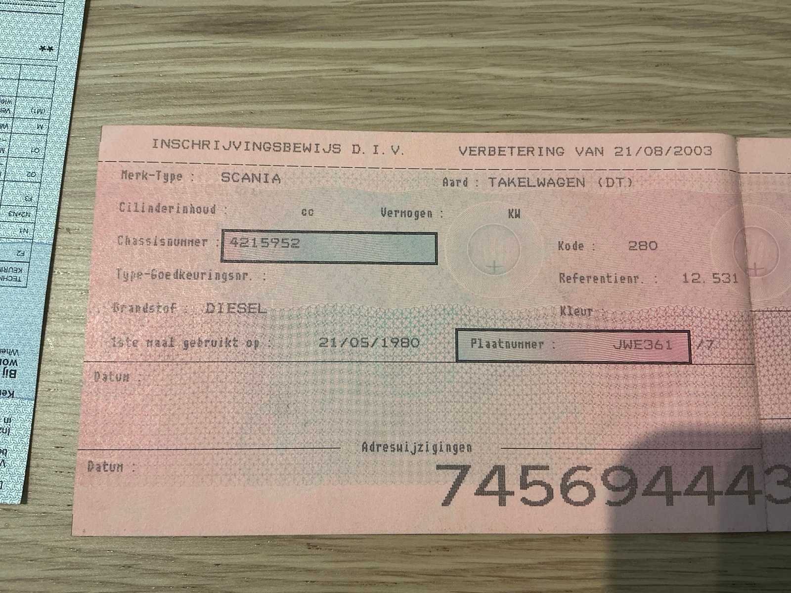 Start en rijdt perfect na opnieuw opladen van de batterij. Carrosserie en interieur moet gerestaureerd worden. Nee Merk: Scania Type: 111 Bouwjaar: 1980 Chassisnummer VIN: 4215932 Cilinderinhoud: 9850cc Kilometerstand bij opname: 573653km Datum eerste toelating: 21/05/1980 Type transmissie: Manueel Aantal assen: 2 Fuel Type: Diesel Laadvermogen: 2900kg Afgelezen kilometerstand: 573653km Nationaliteit documenten: België Kentekenpapieren compleet?: true Handgeschakelde versnellingsbak: true Diesel: true