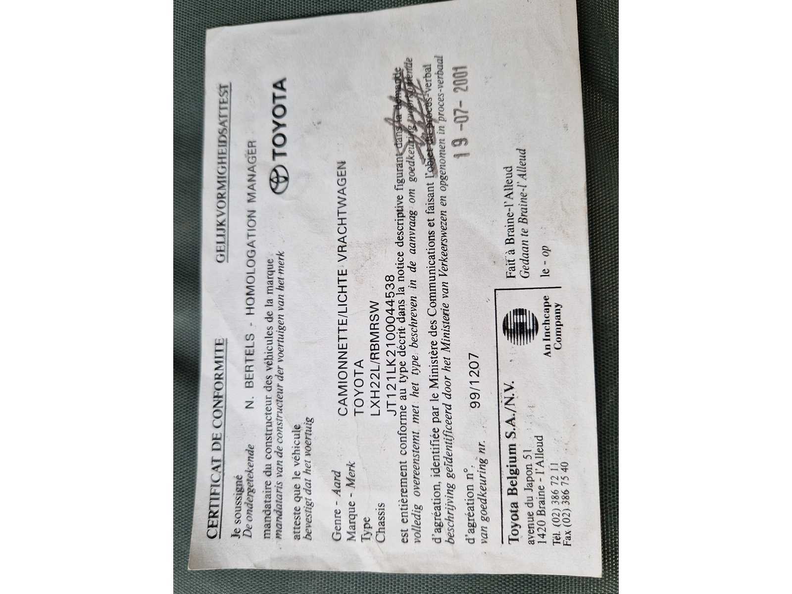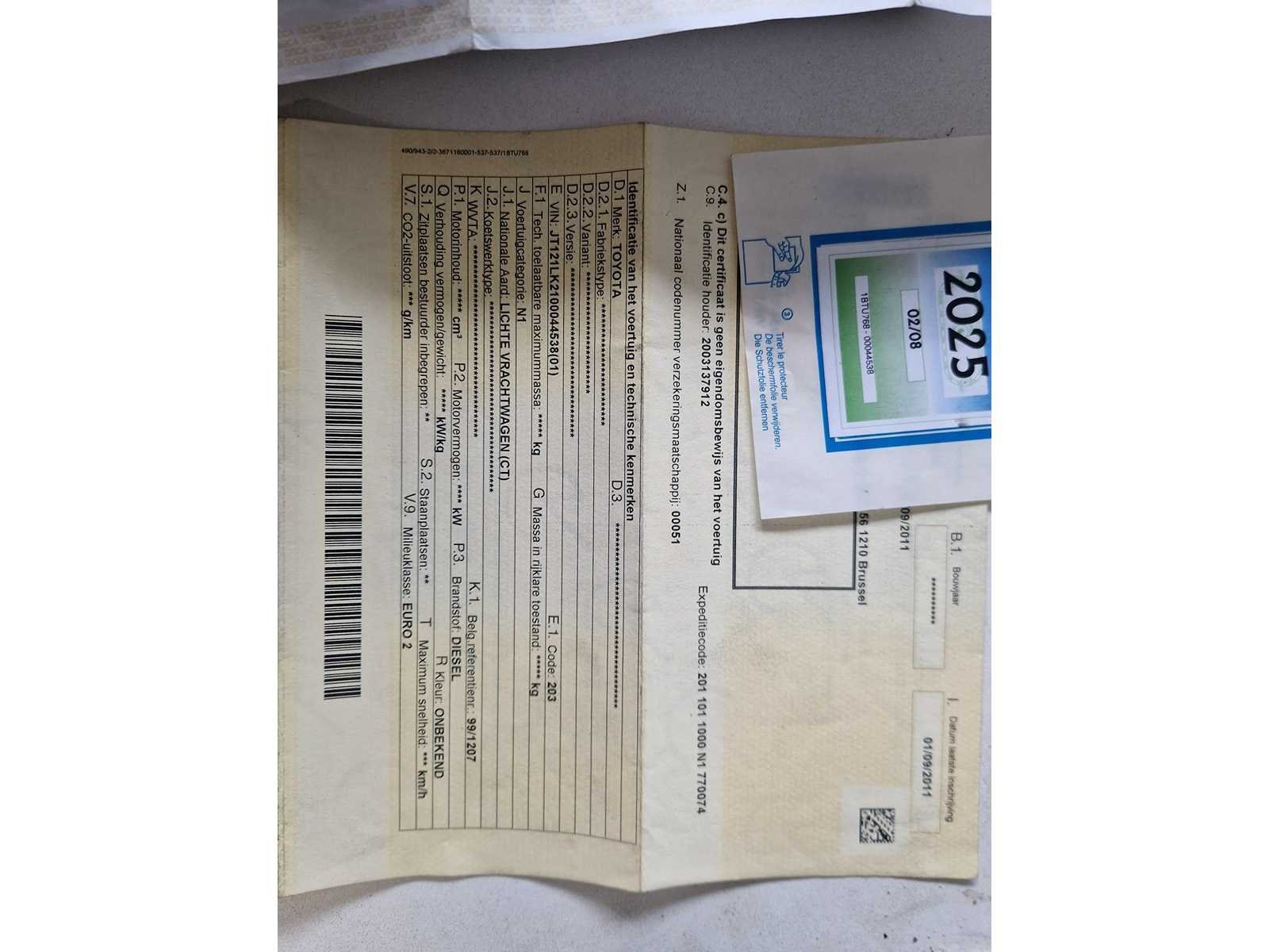 Nee Merk: Toyota Type: Hiace Model: 3 seater Diesel van Chassisnummer: JT121LK2100044538 Afgelezen kilometerstand: 215.554km Cilinderinhoud: 2446cc Vermogen (kW): 55kW Brandstof: diesel Datum eerste toelating: 27-07-2001 Transmissie: manual Kleur: white