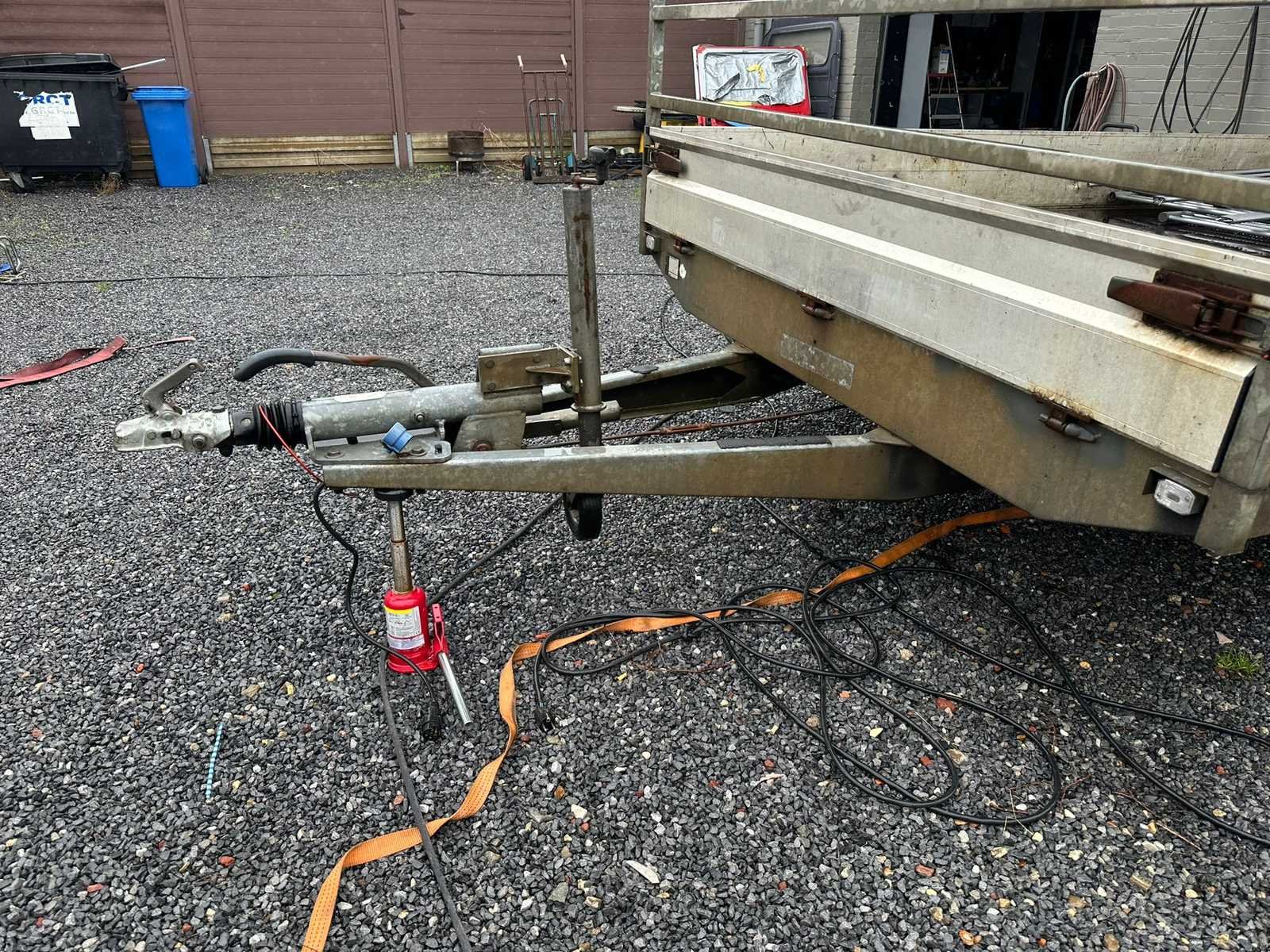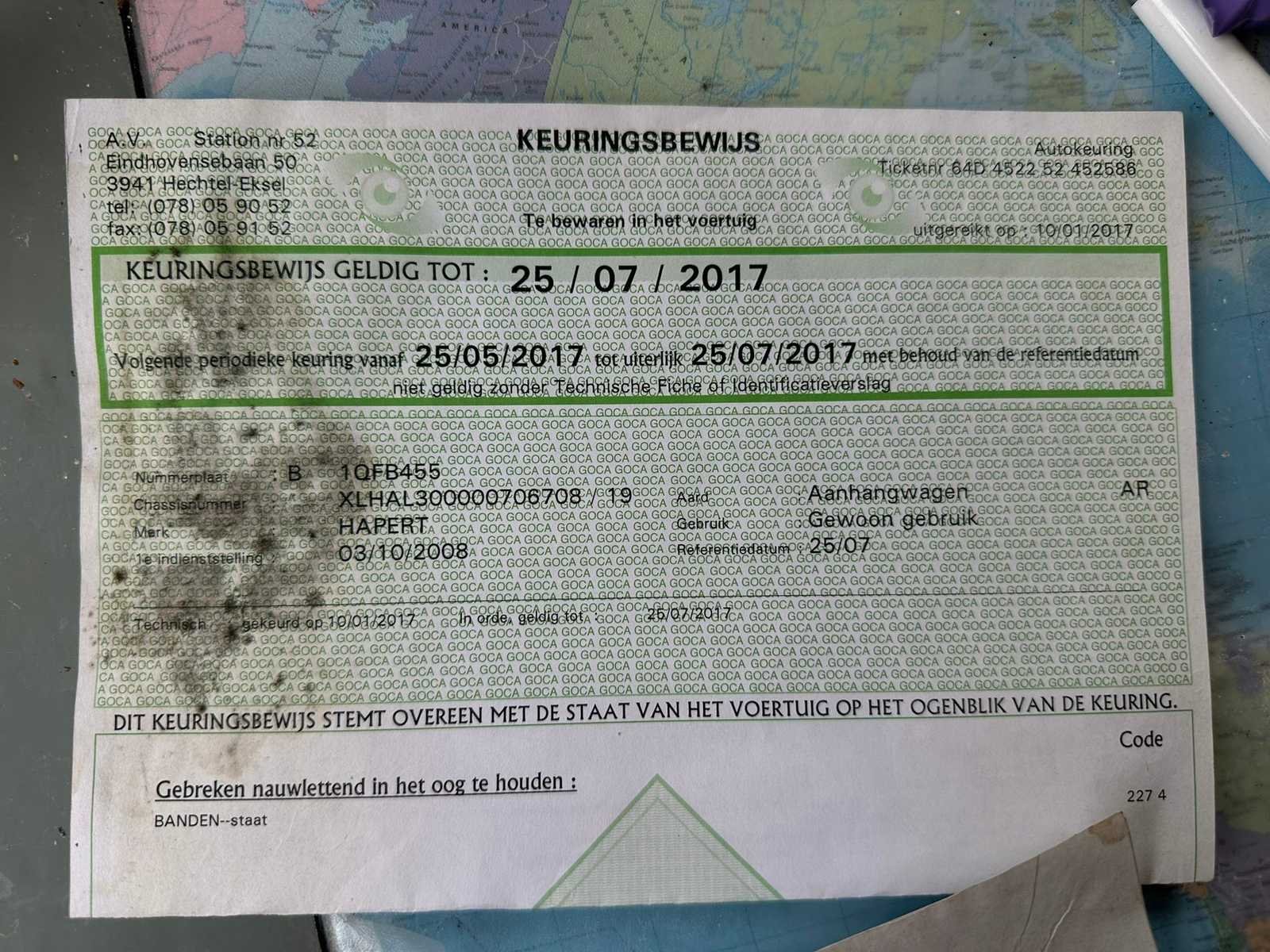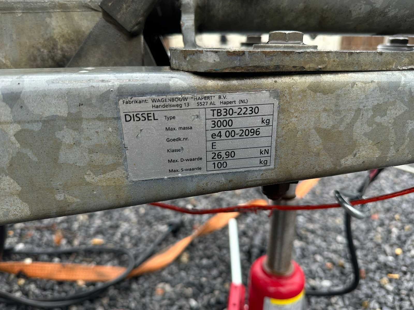 Degelijke Hapert plateau aanhangwagen, type TB30-2230, met een toegelaten maximummassa van 3000 kg. De aanhangwagen is volledig verzinkt en voorzien van opklapbare zijborden en een stevige laadvloer. De dispel (dissel) is in goede staat en uitgerust met een oplooprem en steunwiel. De aanhangwagen vertoont gebruikssporen (zoals zichtbaar op de foto’s) maar is functioneel en stevig gebouwd, ideaal voor bouw- of transportdoeleinden. Nee Merk: Hapert Type: Plateau Model: AL3001 Bouwjaar: 2008 Chassisnummer: XLHAL300000706708 Aantal assen: 2 Laadbak afmeting l: 410cm Laadbak afmeting b: 220cm Ledig gewicht: 670kg Laadvermogen: 2339kg Datum eerste toelating: 03/10/2008 Kentekenpapieren compleet?: true Nationaliteit documenten: Belgisch Zelf rijdend exporteren: Mogelijk