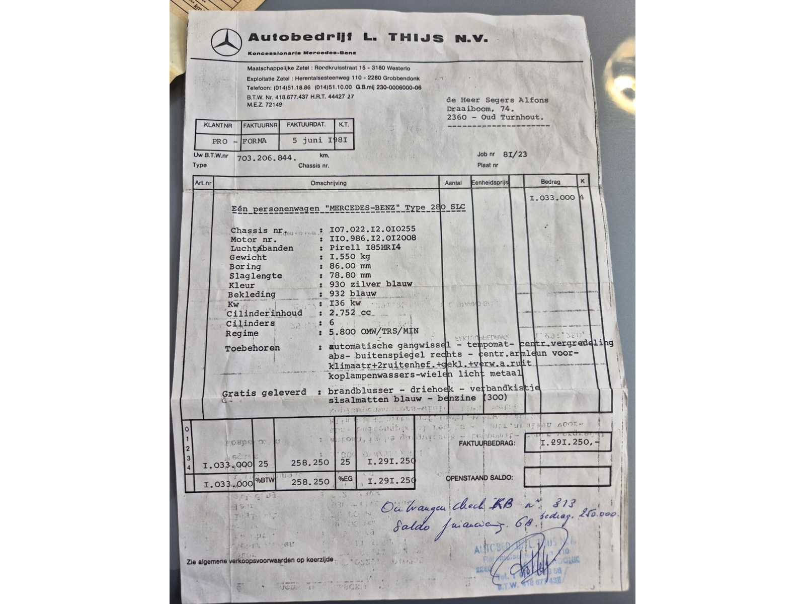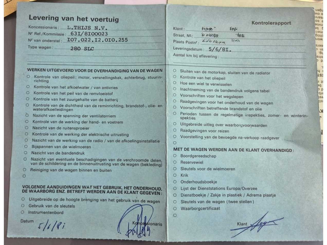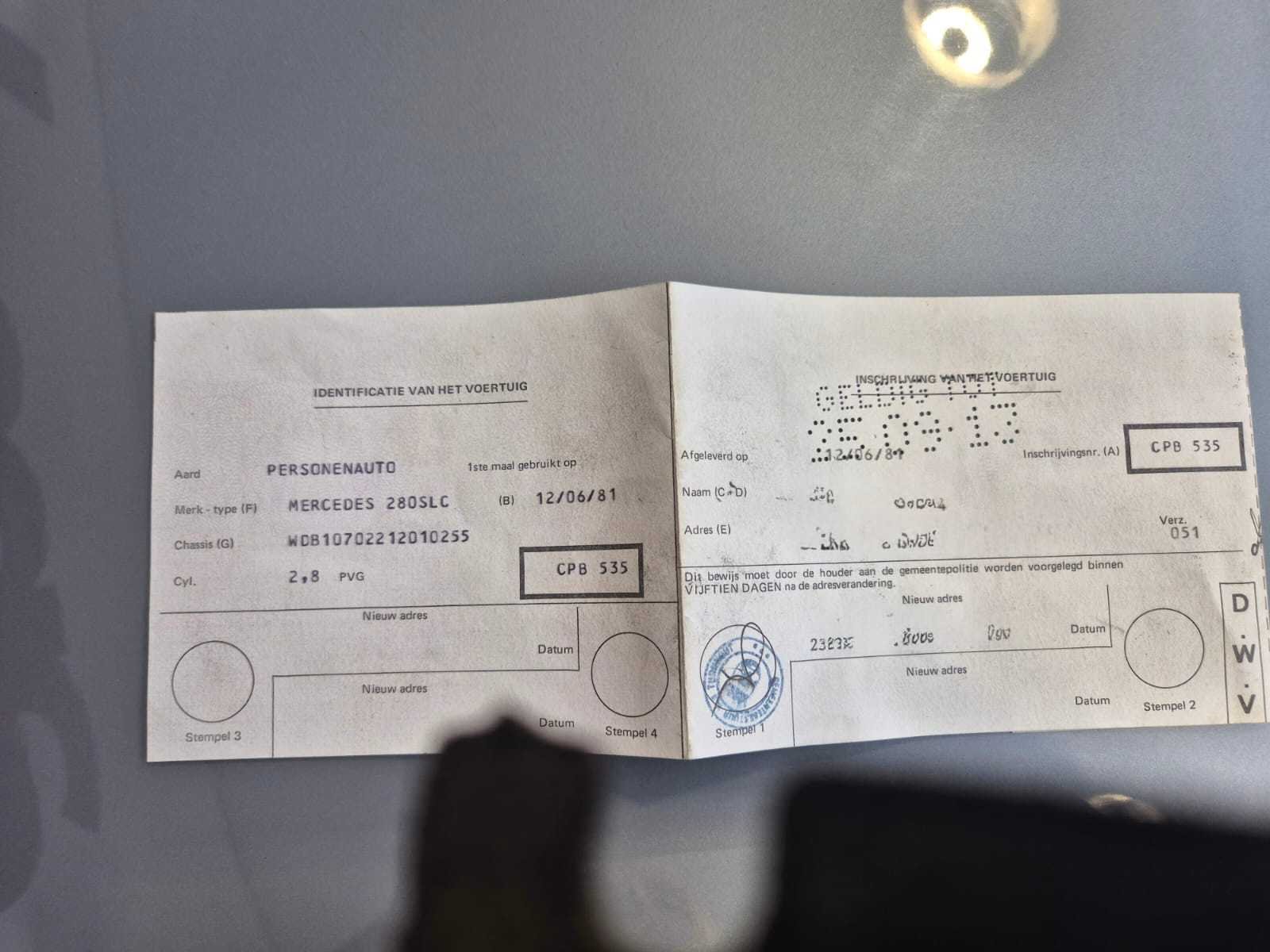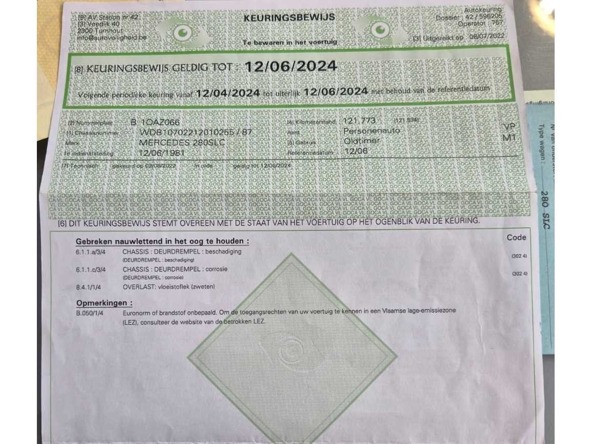 Mercedes-Benz 280 SLC (C107) uit 1981, het laatste bouwjaar van deze coupé. Deze auto is uitgevoerd met de originele 2.8L zes-in-lijn M110-motor met dubbele bovenliggende nokkenassen. De automaat schakelt netjes en de wagen rijdt comfortabel. Bijzondere kenmerken • ✔️ Originele Belgische wagen • ✔️ Originele kilometerstand van slechts 122.039 km • ✔️ Volledig originele motor en interieur • ✔️ Interieur in blauw velours in zeer goede staat • ✔️ Originele houten middenconsole met klassieke Becker radio • ✔️ Voorzien van klimaatregeling, originele versnellingspook, werkende meters • ✔️ Mooie lak, chroomwerk in goede staat • ✔️ Motorruimte proper en droog, geen zichtbare lekkages • ✔️ Accu en bedrading netjes verzorgd • ✔️ Kofferbak volledig bekleed met originele afwerking + brandblusser aanwezig • ✔️ Geen roest zichtbaar aan krikpunten, wielkasten of naden • ✔️Eerste eigenaar. Data kaart origineel. Nee Merk: Mercedes Benz Type: 280 Bouwjaar: 1981 Chassisnummer: WDB10702212010255 Afgelezen kilometerstand: 122039 Model: SLC Brandstof: Benzine Datum eerste toelating: 06/1981 Datum eerste toelating (NL): 1981 APK vervaldatum: 06/2024 Nationaliteit documenten: Belgisch Aantal deuren: 5 Aantal zitplaatsen: 5 Carpass: true Gelijkvormigheidsattest aanwezig: true