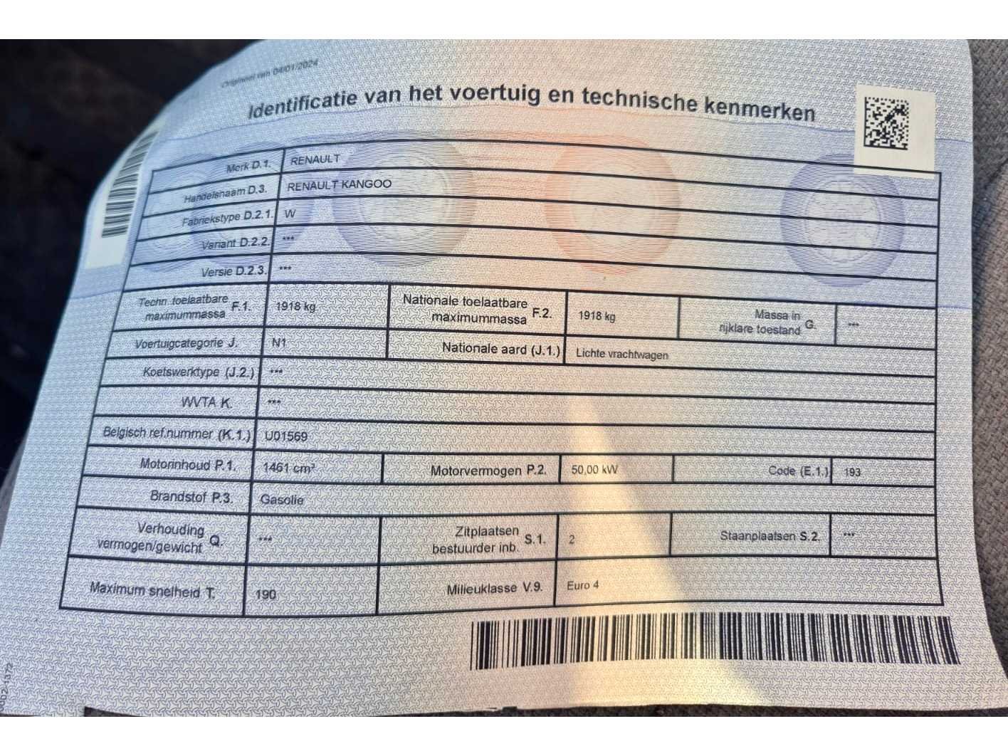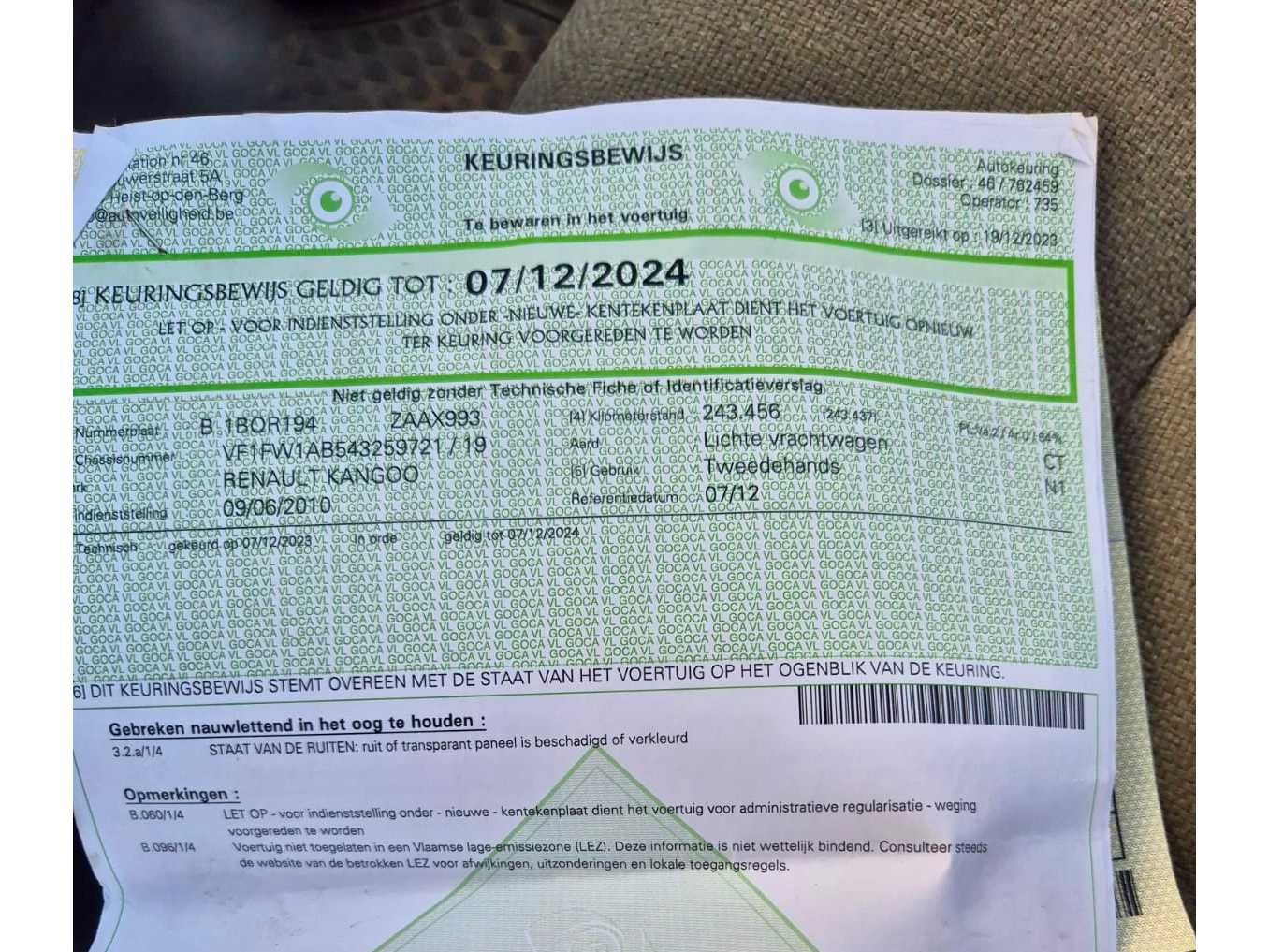 Opgelet, deze auto zal niet worden gekeurd voor verkoop (van toepassing op Belgische particuliere kopers). Nee Merk: Renault Model: Kangoo Bouwjaar: 2010 Chassisnummer: VF1FW1AB543259721 Afgelezen kilometerstand: 254762km Cilinderinhoud: 1461cc Vermogen (kW): 50kW Brandstof: Diesel Nationaliteit documenten: Belgisch Emissieklasse: Euro4