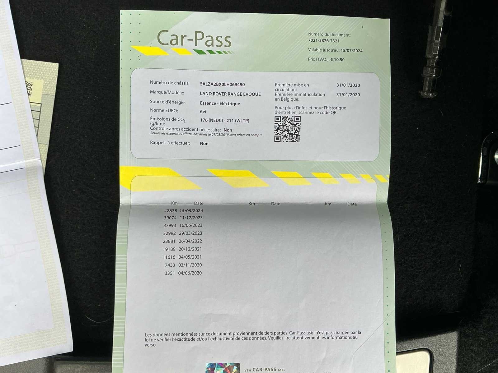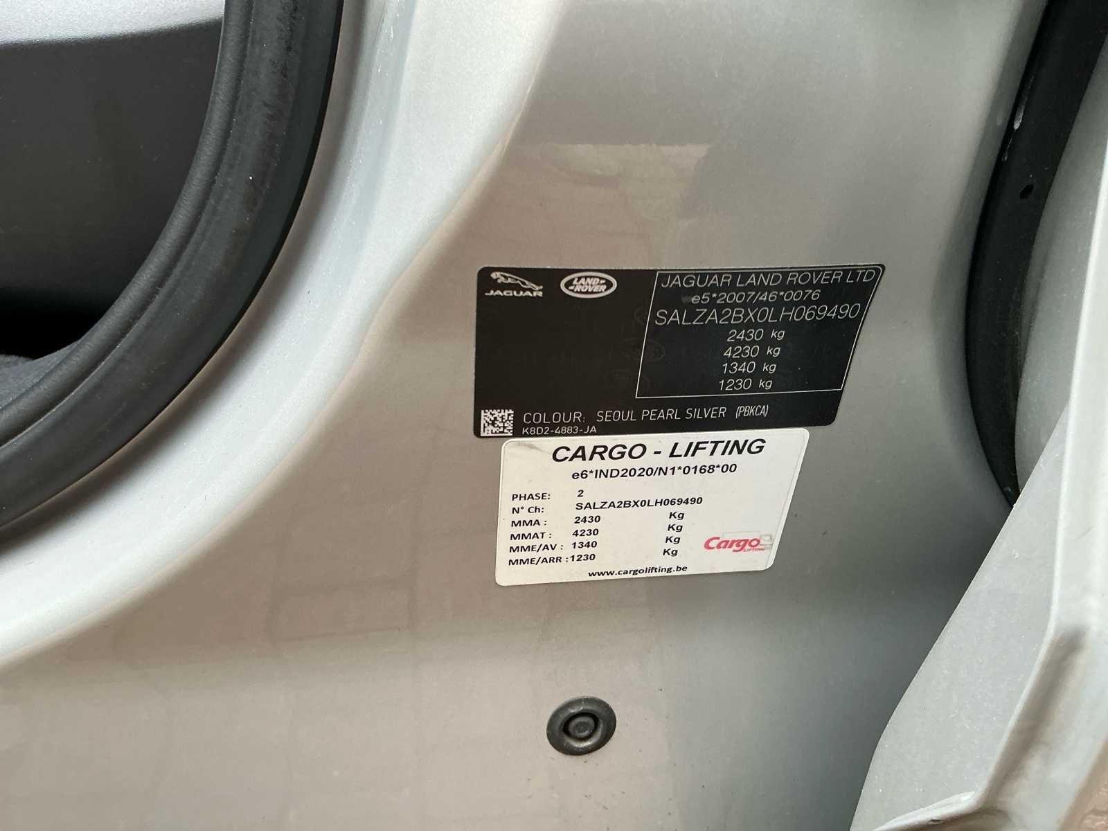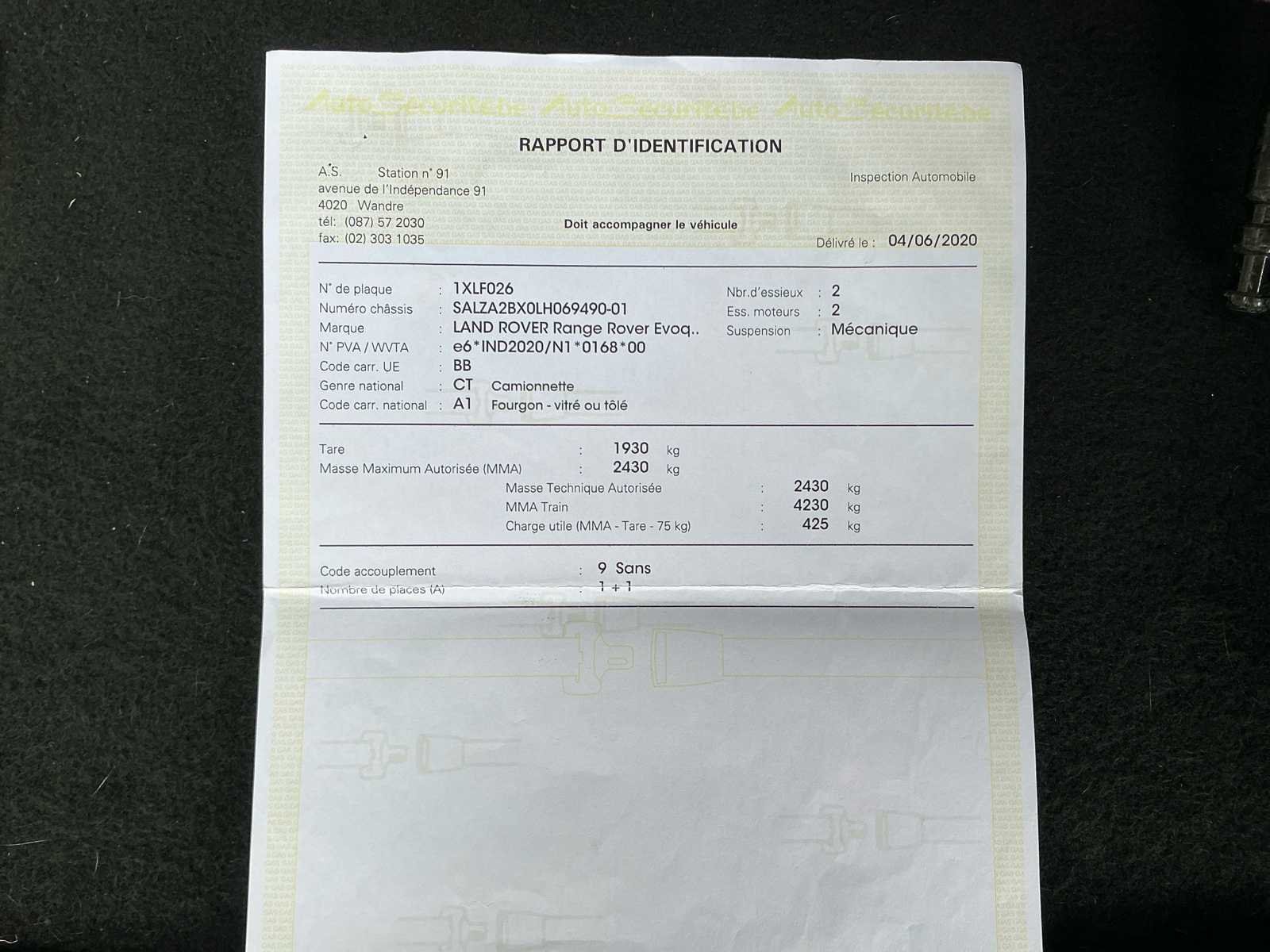 Land Rover Range Rover Evoque R-Dynamic 4WD P250 SE 2020, SUV premium transformé en utilitaire léger. À 59 097 km, état excellent, entretenu exclusivement chez Range Rover Liège. Toit panoramique, navigation, sièges électriques avec mémoire, caméra de recul, et puissance impressionnante de 183 kW sur essence malgré le poids. Avantage fiscal : 100% déductible pour votre société, avec sièges d'origine pour un confort luxe ; sièges arrière neufs jamais installés, montage en quelques tours de vis car très légers. Style, performance et économies No Merk: Land rover Model: Range Rover Evoque R-Dynamic 4WD P250 SE Type: SUV Bouwjaar: 2020 Afgelezen kilometerstand: 59097km Cilinderinhoud: 1997cc Vermogen (kW): 183kW Brandstof: Benzine Chassisnummer: SALZA2BX0LH069490 Datum eerste toelating: 31/01/2020 Aantal zitplaatsen: 2 Kleur: Silver Transmissie: Autmaat Emissieklasse: Euro 6d Aantal deuren: 5 Aantal sleutels: 2 Nationaliteit documenten: Belgisch Gelijkvormigheidsattest aanwezig: true Carpass: true Vavato voert geen technische keuring uit.: true Airconditioning: true Navigatie: true LED-koplampen: true Leder bekleed: true Vierwielaandrijving 4x4: true