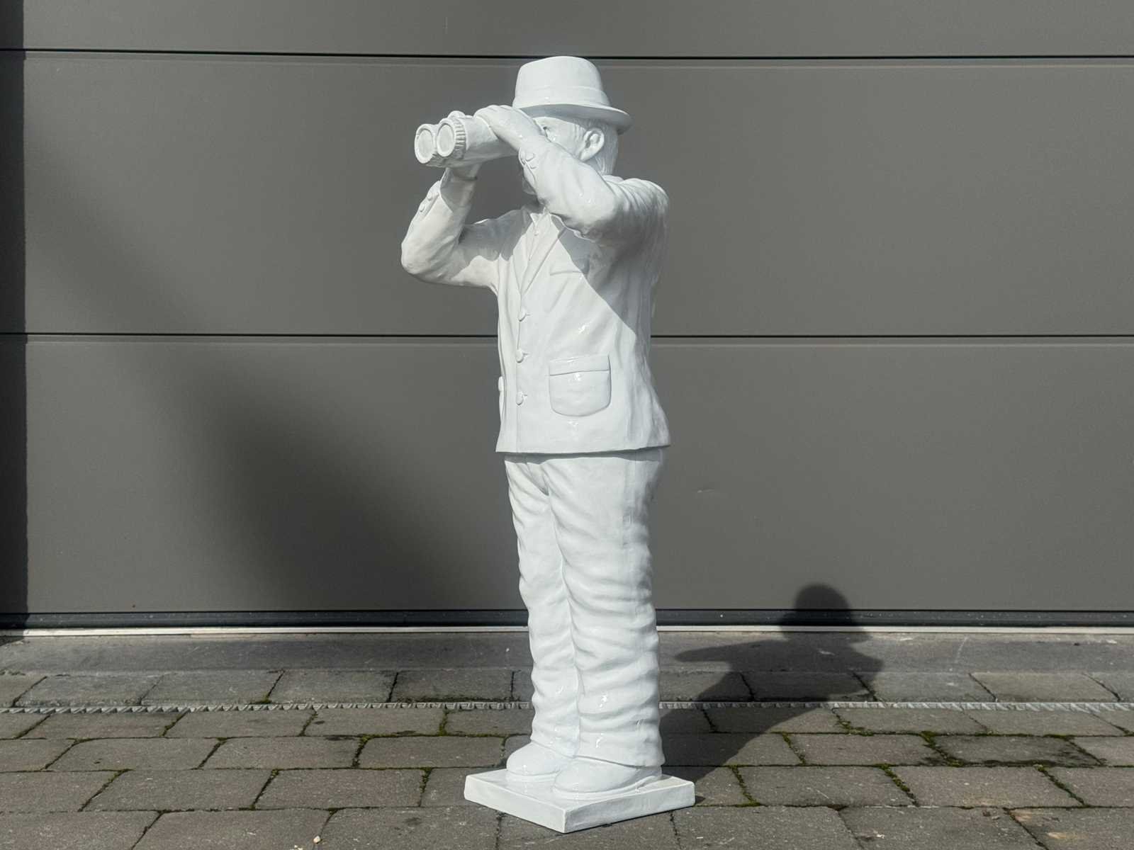 Man met Verrekijker Wit H90cm Polystone / Polyester Stockverkoop wegens stopzetting activiteiten!!! No Hoogte: 90 Leveringsvoorwaarden: Niet gefundeerd - onverpakt