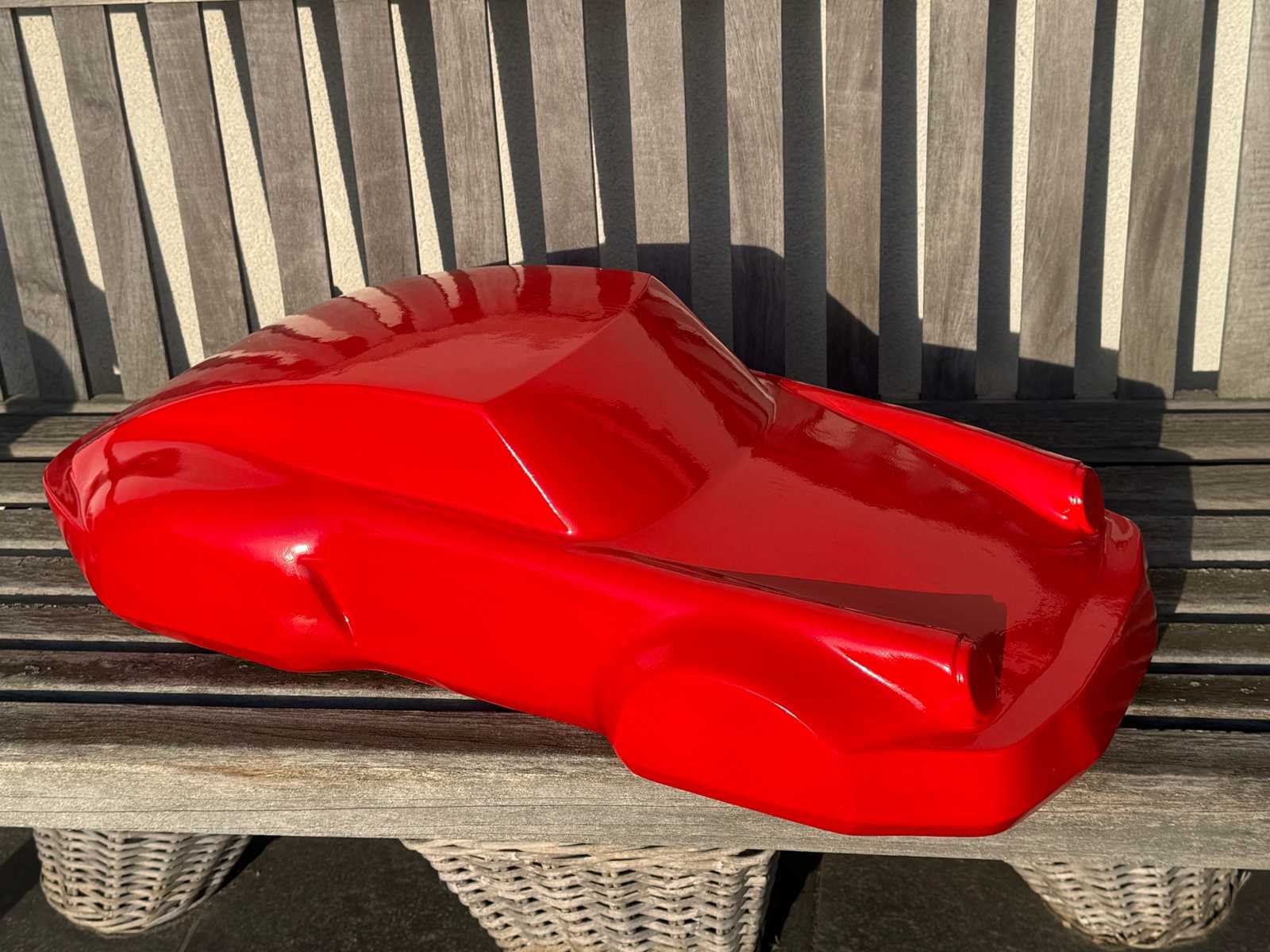 Porsche 911 Sculptuur 90cm Rood L90cm x B37cm x H23cm Polystone / polyester Stockverkoop wegens stopzetting activiteiten!!! No Lengte: 90 Leveringsvoorwaarden: Niet gefundeerd - onverpakt