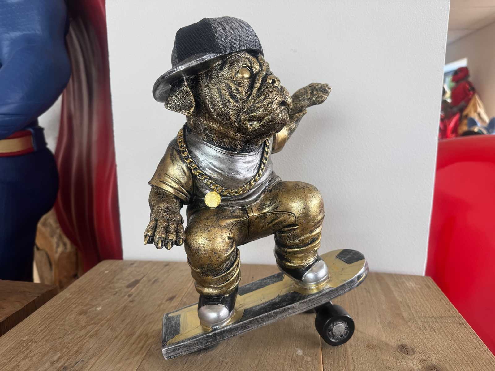 Bulldog Skateboard Original H34cm x L24cm Polystone / Polyester Stockverkoop wegens stopzetting activiteiten!!! No Lengte: 24 Hoogte: 34 Materiaal: polyester Leveringsvoorwaarden: Niet gefundeerd - onverpakt