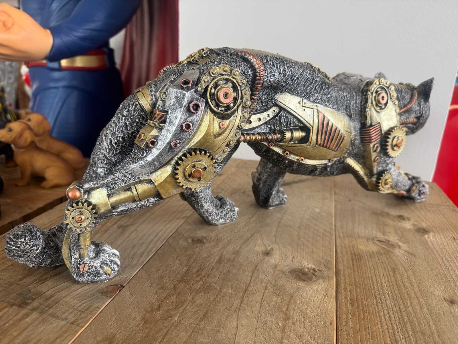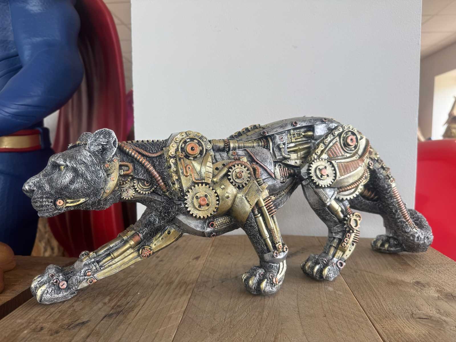 Panter Lopend Steampunk Zilver H21cm x L55cm Polystone / Polyester Stockverkoop wegens stopzetting activiteiten!!! No Lengte: 55 Hoogte: 21 Materiaal: polyester Leveringsvoorwaarden: Niet gefundeerd - onverpakt