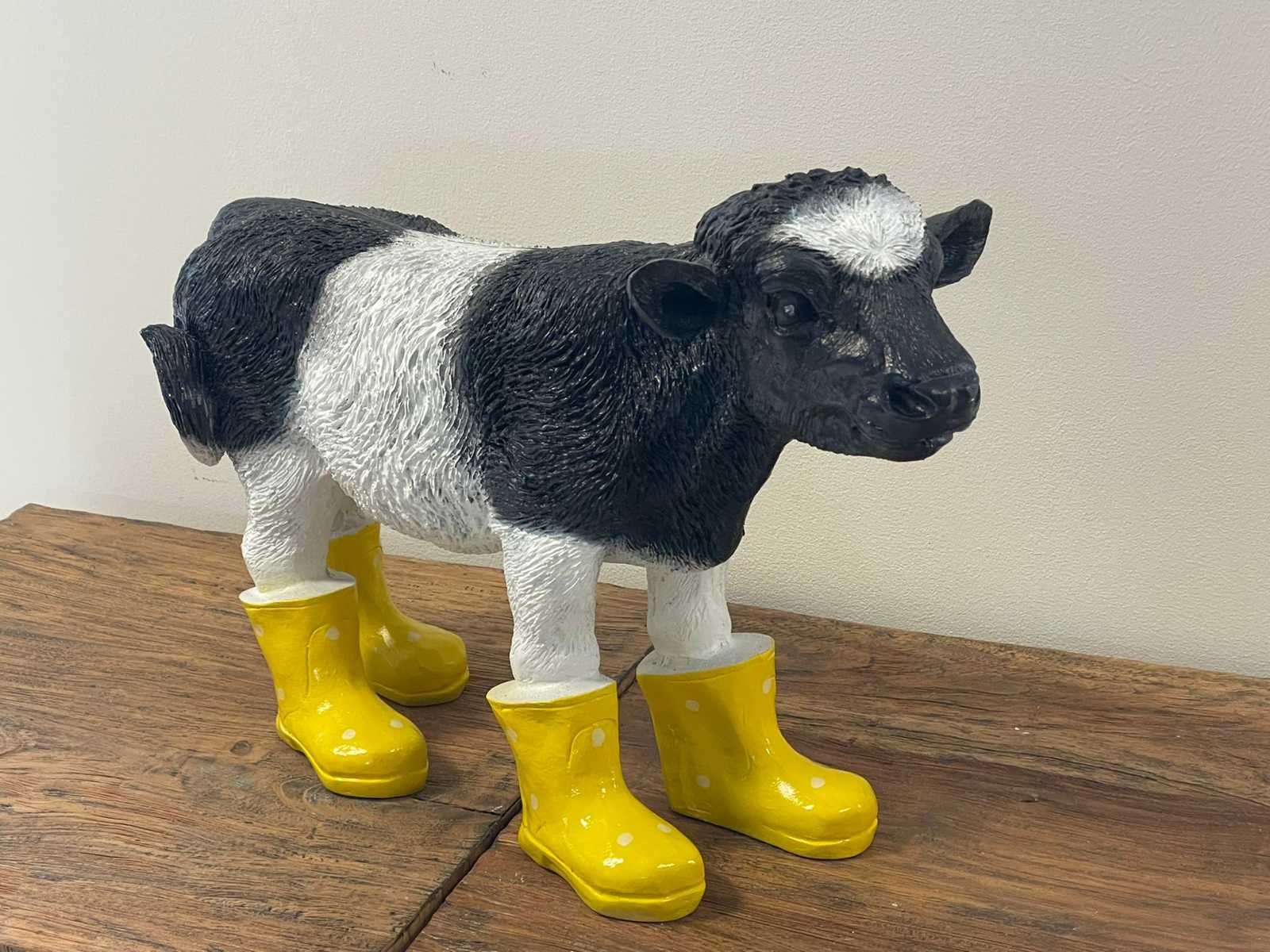 Koe met gele botjes H30cm x L39cm Polyester / Polystone Stockverkoop wegens stopzetting activiteiten!!! No Hoogte: 30 Materiaal: Polyester Leveringsvoorwaarden: Niet gefundeerd - onverpakt