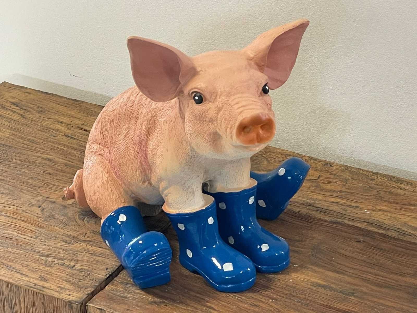 Varken met blauwe botjes H29cm x L30cm Polyester / Polystone Stockverkoop wegens stopzetting activiteiten!!! No Lengte: 30 Hoogte: 29 Materiaal: Polyester Leveringsvoorwaarden: Niet gefundeerd - onverpakt