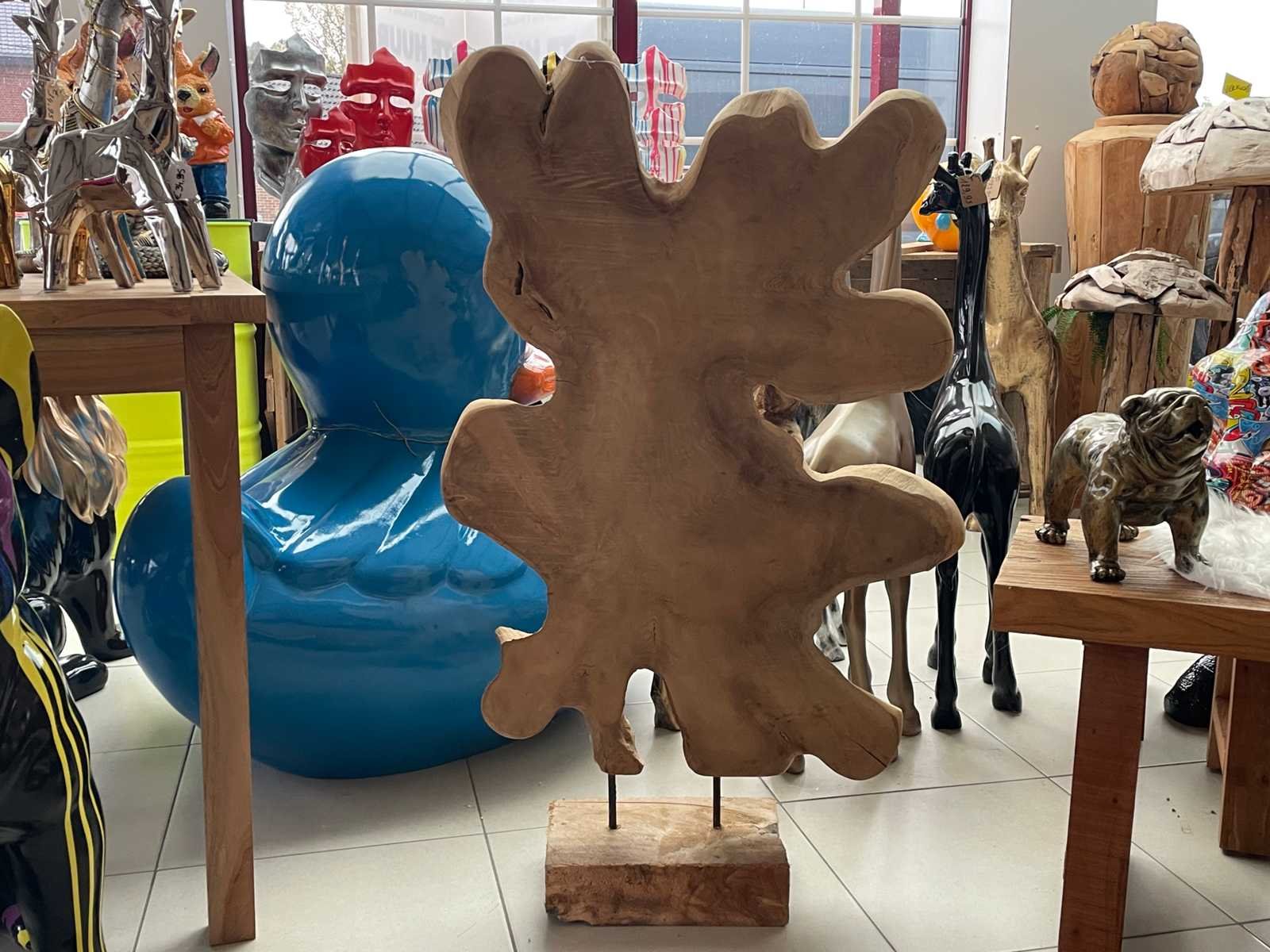 Deco blad in Teak op sokkel H105cm x B60cm x D5cm Stockverkoop wegens stopzetting activiteiten!!! No Breedte: 60 Hoogte: 105 Materiaal: teak Leveringsvoorwaarden: Niet gefundeerd - onverpakt
