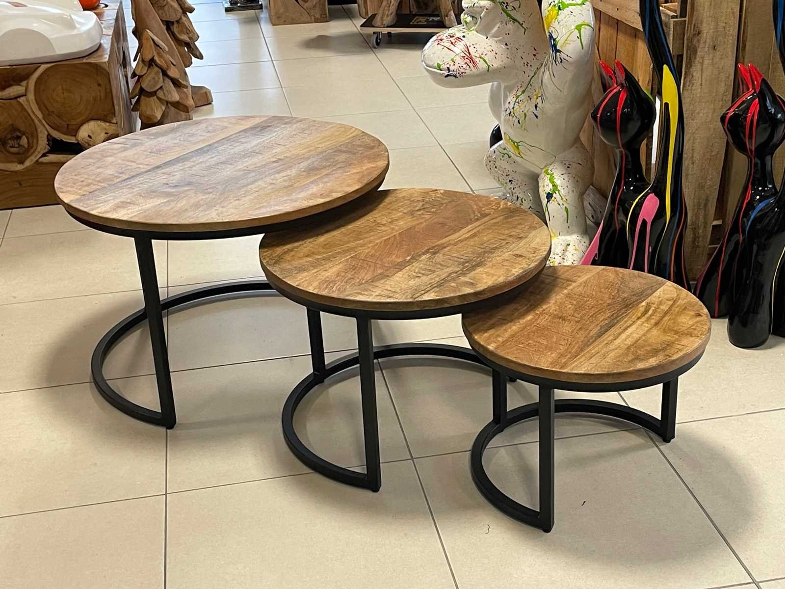 Set van 3 bijzettafels blad mangohout