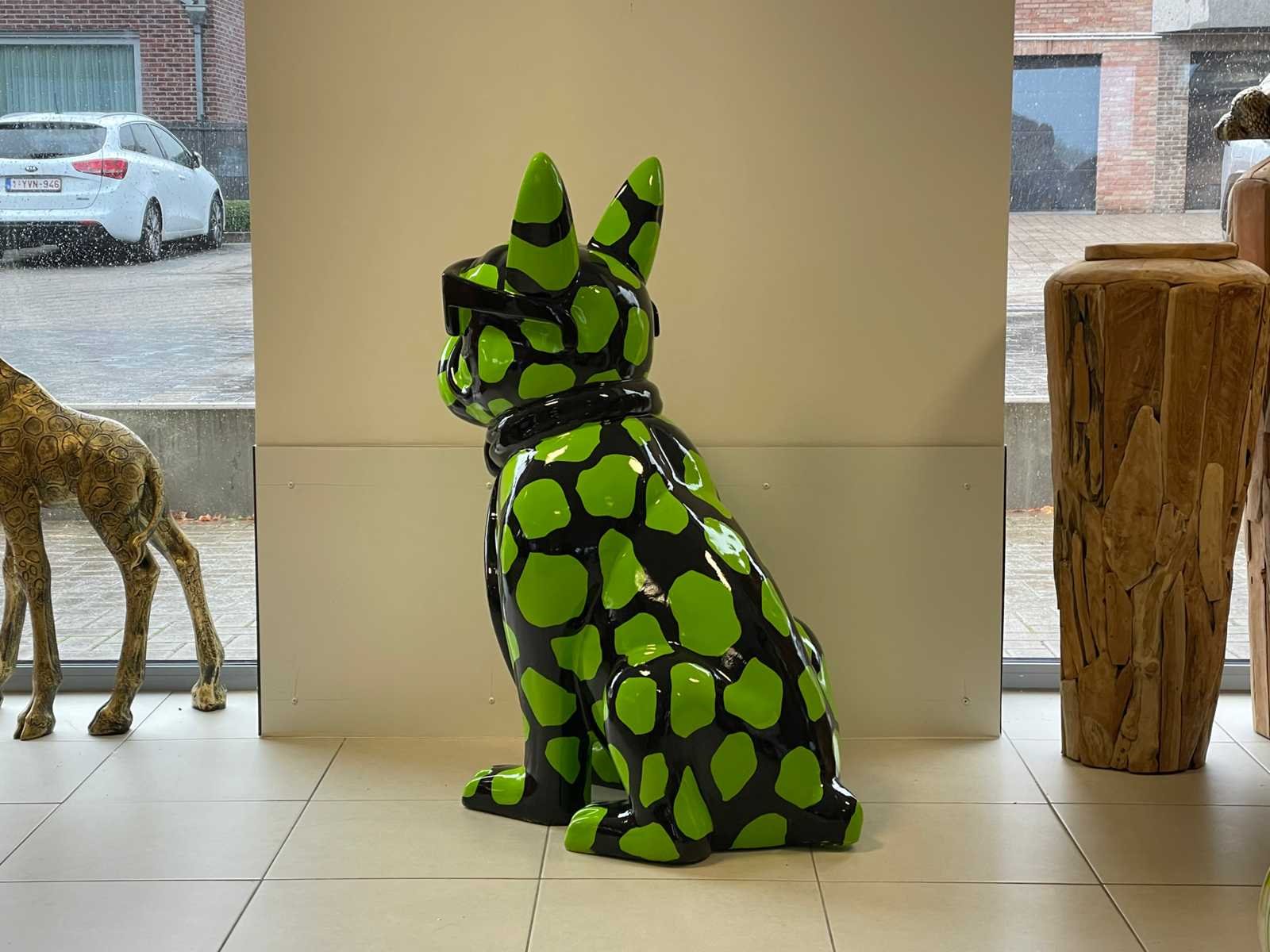 Franse bulldog met bril zwart/groen vlekken h120cm