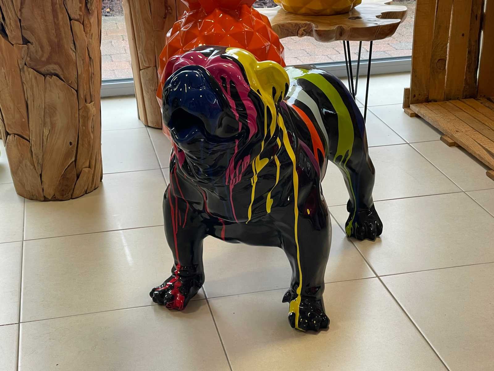 Engelse Bulldog Zwart Trash H70cm x L90cm Polyester Stockverkoop wegens stopzetting activiteiten!!! No Lengte: 90 Hoogte: 70 Materiaal: Polyester Leveringsvoorwaarden: Niet gefundeerd - onverpakt