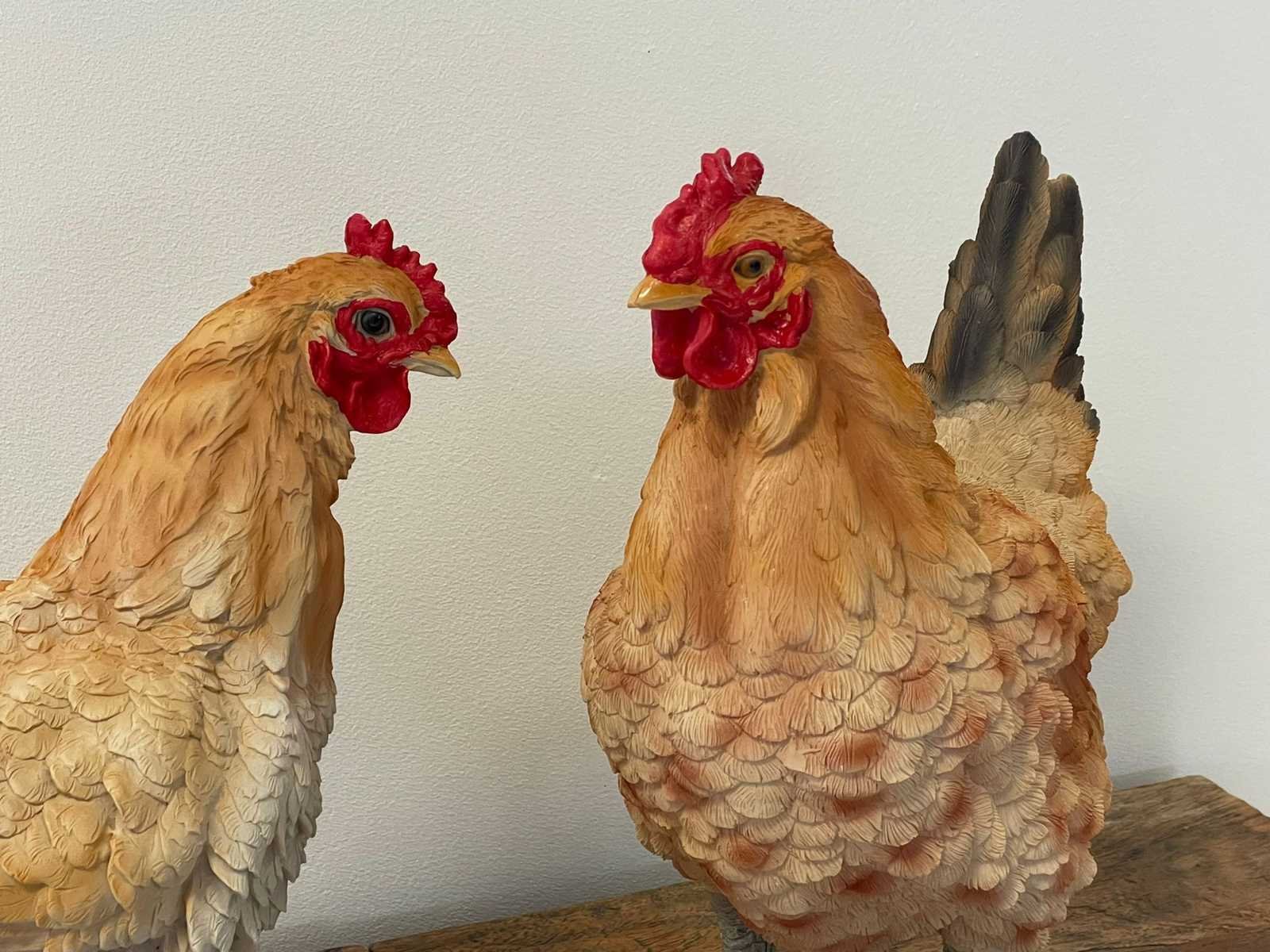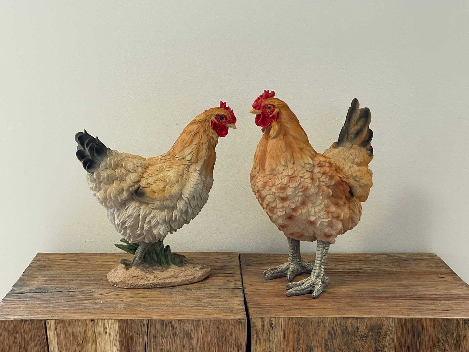 Set van 2 Kippen Staand Naturel H37cm & H32cm Polyester Stockverkoop wegens stopzetting activiteiten!!! No Hoogte: 37 Materiaal: Polyester Leveringsvoorwaarden: Niet gefundeerd - onverpakt