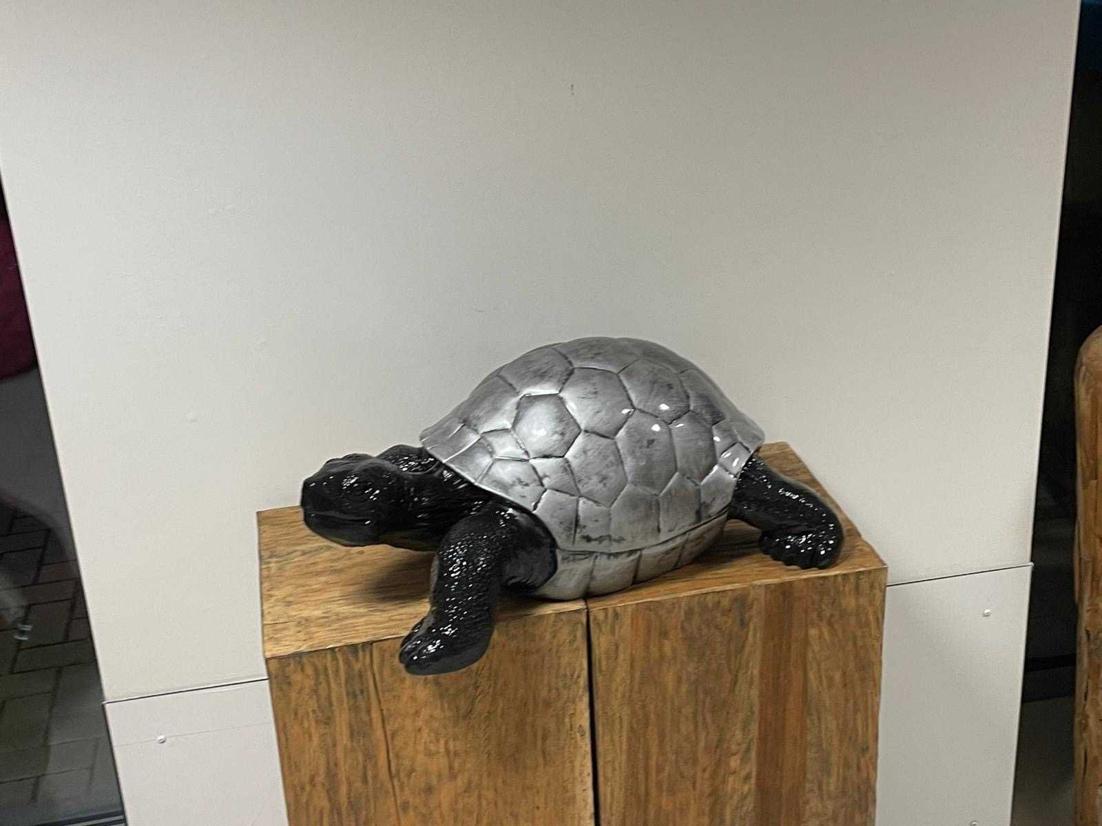 Schildpad H30cm x L70cm Zilver/Zwart Polyester Stockverkoop wegens stopzetting activiteiten!!! No Lengte: 70 Hoogte: 30 Materiaal: Polyester Leveringsvoorwaarden: Niet gefundeerd - onverpakt