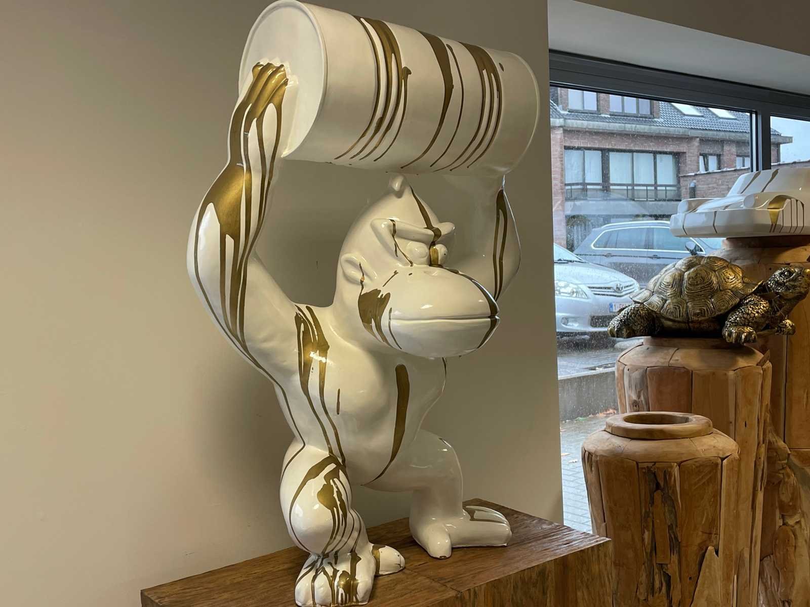 Donkey Kong met Ton Wit Trash Goud Hoogte 100cm Polyester No Hoogte: 100 Materiaal: Polyester Leveringsvoorwaarden: Niet gefundeerd - onverpakt
