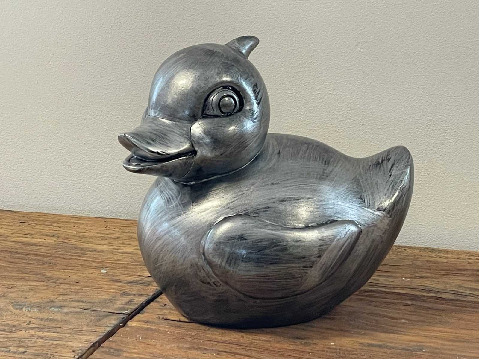 Eend Old Silver H23cm Polyester / Polystone Stockverkoop wegens stopzetting activiteiten!!! No Hoogte: 23 Materiaal: Polyester Leveringsvoorwaarden: Niet gefundeerd - onverpakt