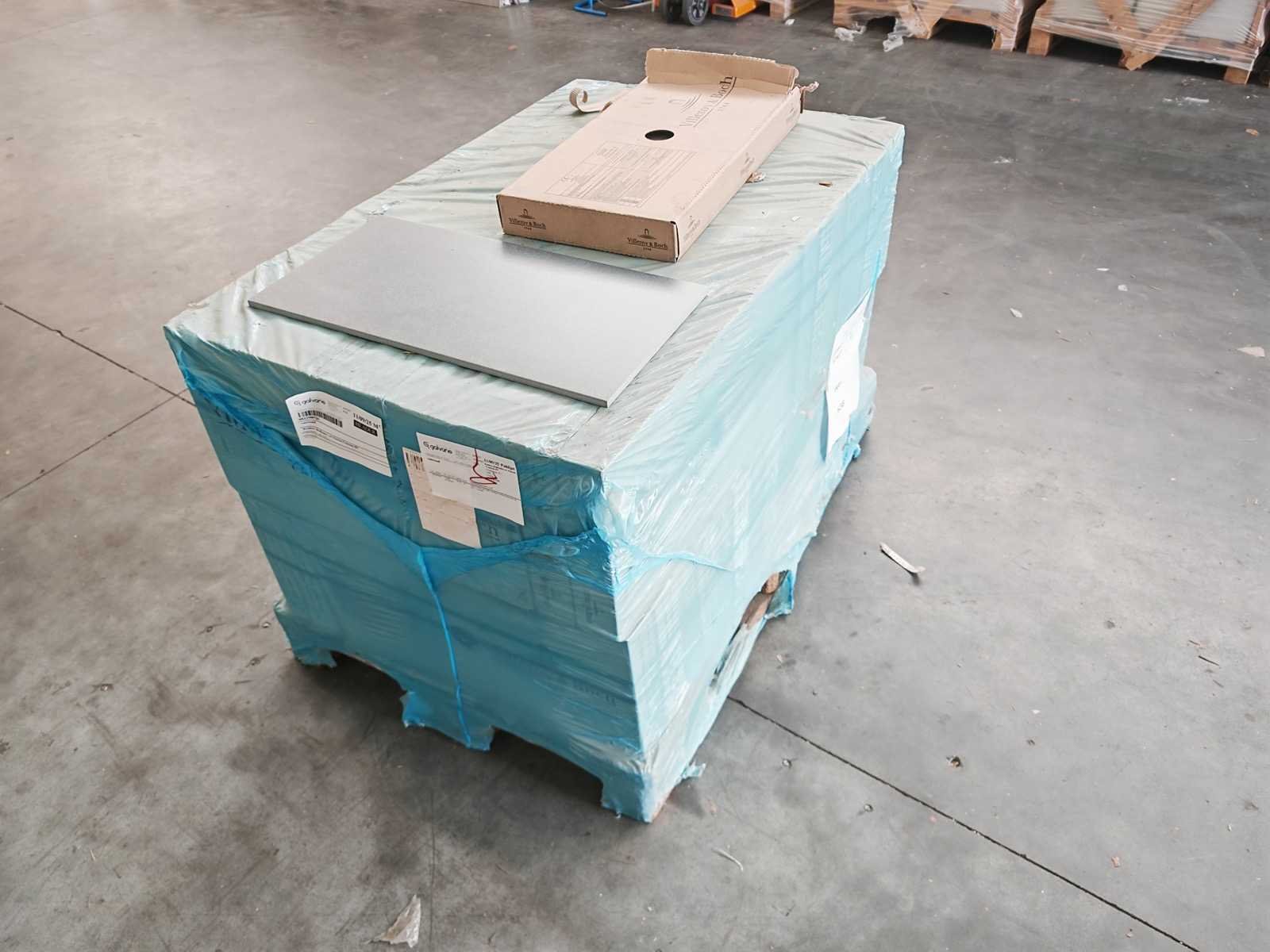 No Merk: Villeroy&Boch Kleur: Antraciet Afwerking: Mat R10 Lengte: 300mm Breedte: 600mm Dikte: 10mm Materiaal: Keramiek Type: Vloertegel Model: X-Plane 2392 ZM90 Aantal m² per verpakking: 1.08m² Aantal pakken: 41 Totaal oppervlakte: 44.28m² Totaal gewicht: 900kg