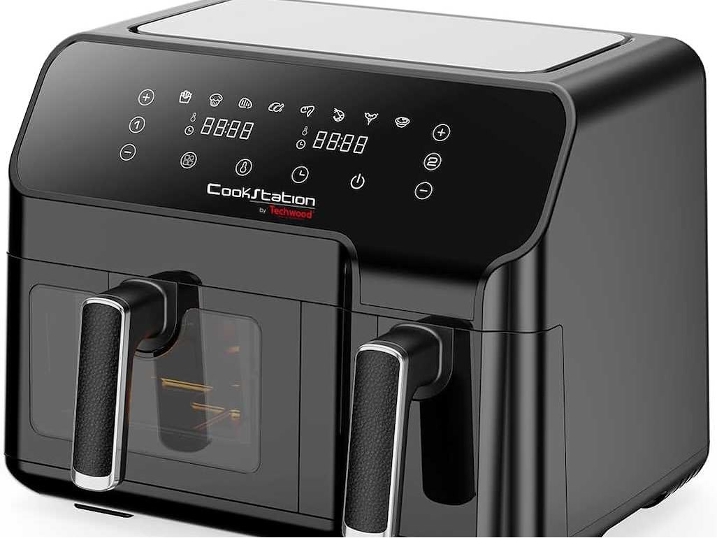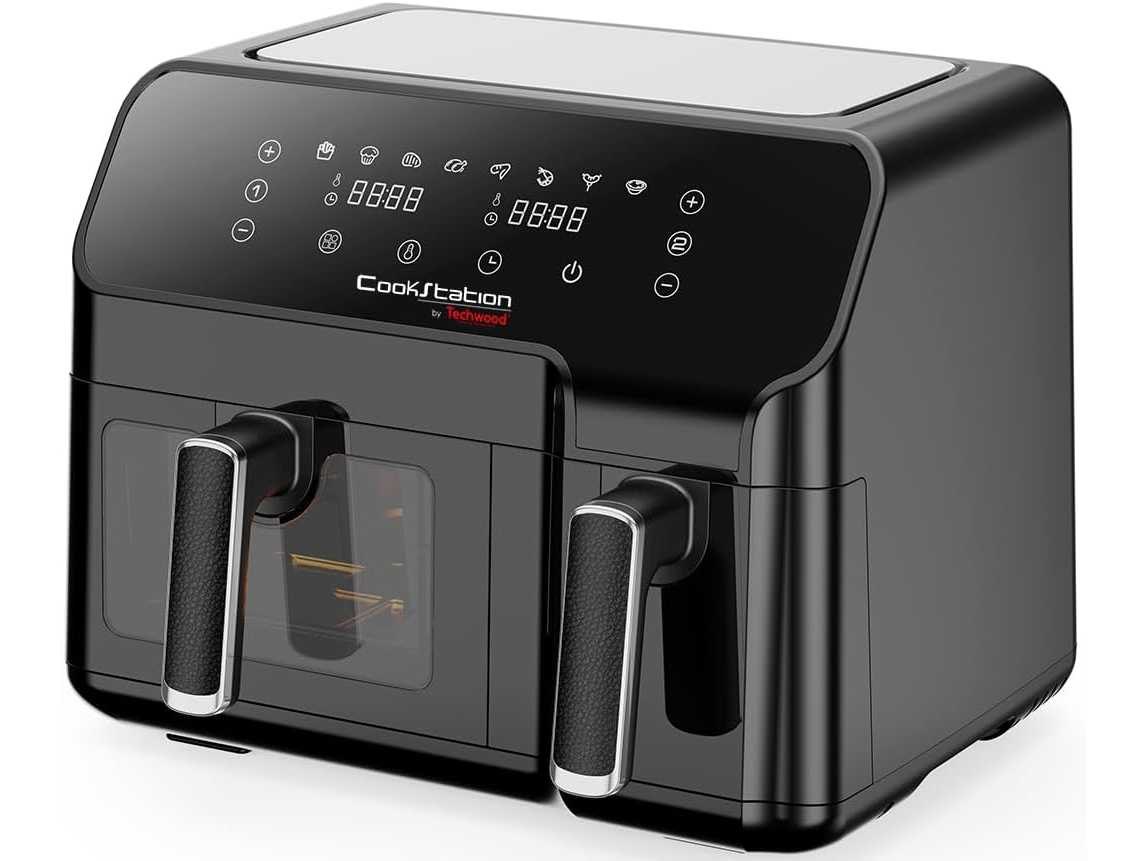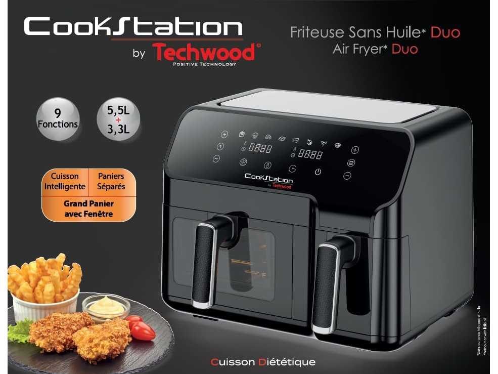 Gezond, vetarm koken Capaciteit: 5,5 L + 3,3 L (8,8 L ~ 3 kg friet) Instelbare thermostaat: 80 tot 200°C Timer 60 minuten Grote mand met venster LED-aanraakbedieningspaneel Bescherming tegen oververhitting Slim koken Zodat beide zones tegelijkertijd klaar zijn met koken 9 functies: Non