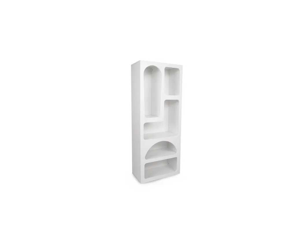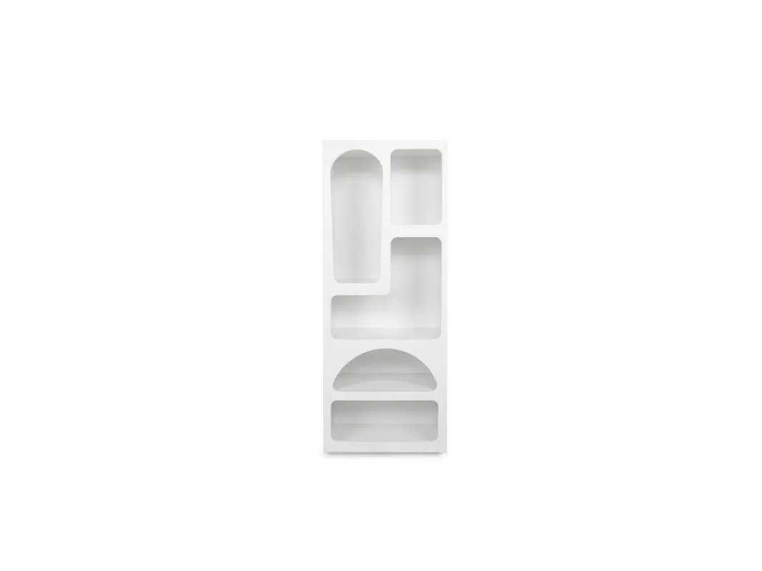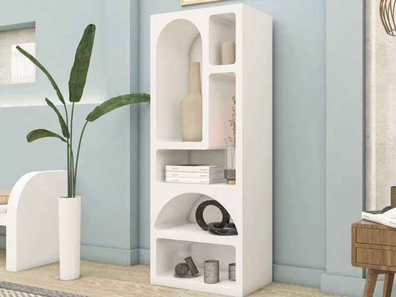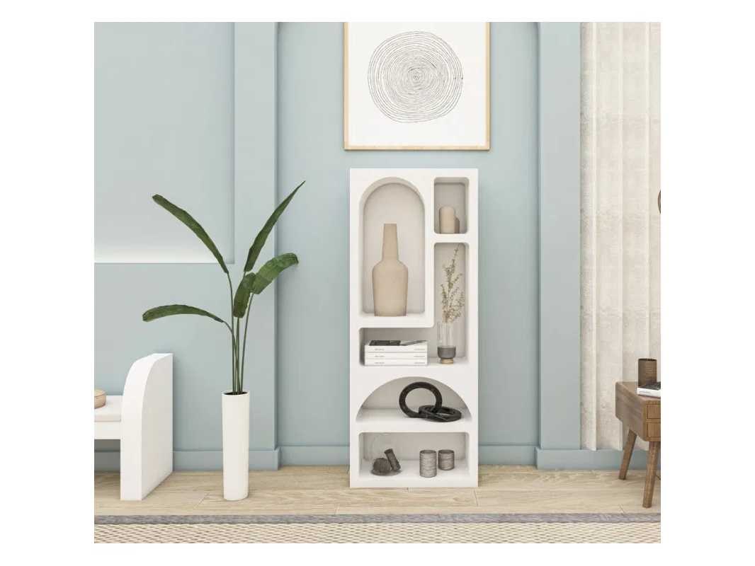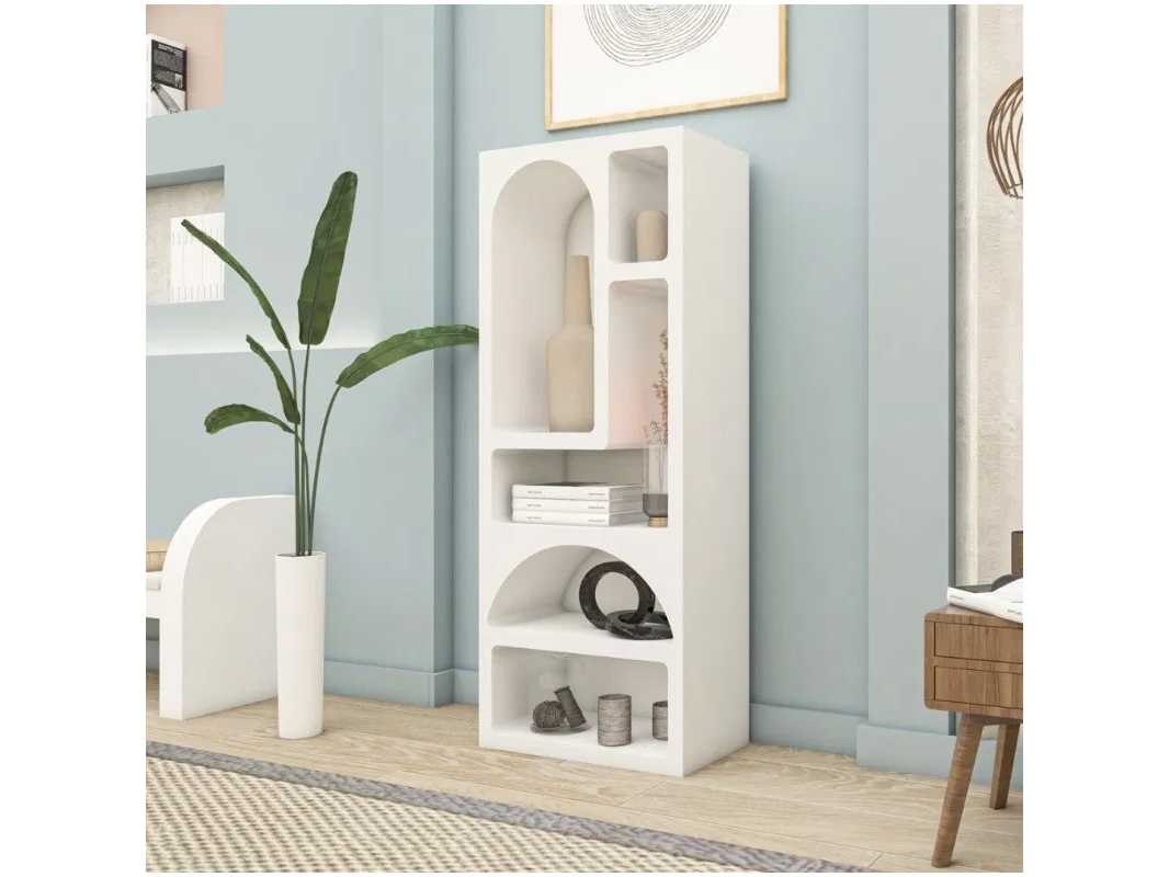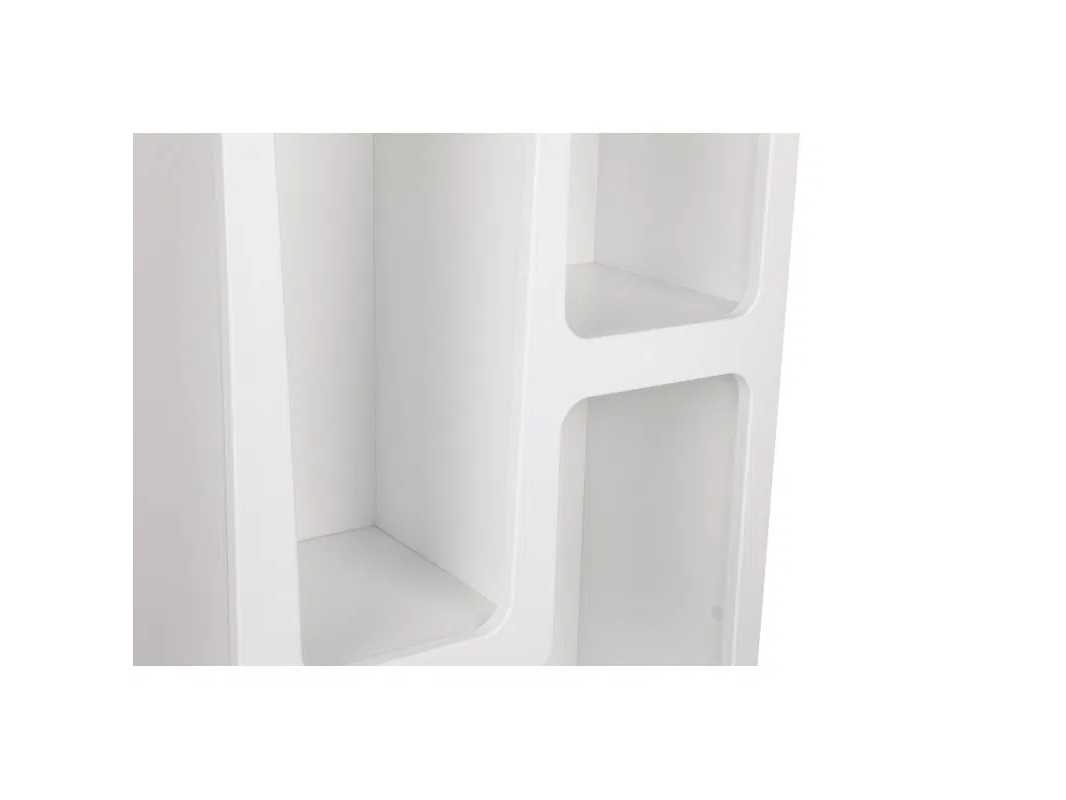 Productomschrijving: De boekenkast heeft een modern en elegant design. Het is gemaakt van melamine en MDF. De dikte van het materiaal is 18 cm. De afwerking is wit. De totale afmetingen zijn 60 cm breed x 150 cm hoog x 32 cm diep. Non