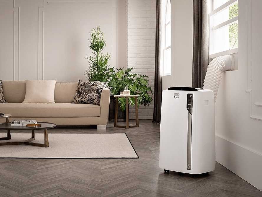 Hoog koelvermogen van 10.700 BTU/h1 (2,7 kW2) voor ruimtes tot 100 m3 Ventilatorfunctie met 3 snelheden Ontvochtigingsfunctie tot 36 l/24 uur 24-uurs elektronische timer en thermostaat Raamset inbegrepen voor eenvoudige installatie Handgrepen en zwenkwielen voor moeiteloos transport Non