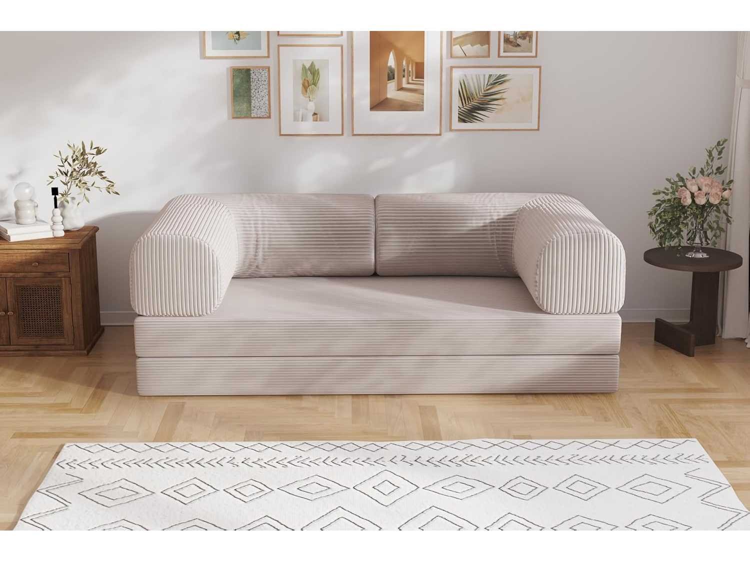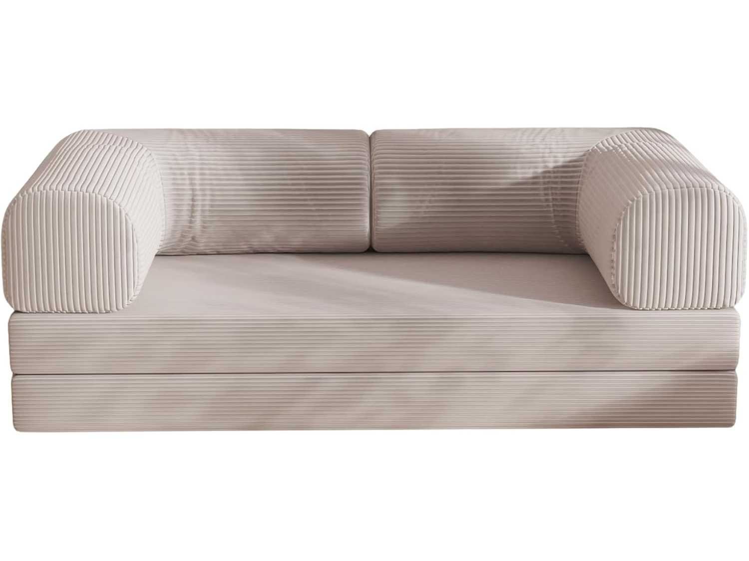 Modulaire slaapbank, Wasbare corduroy hoes, ROYALE AFMETINGEN: Ruime bank van 200 cm lang, 90 cm diep en 34 cm hoog, perfect voor uw leefruimte. OPTIMAAL COMFORT: Hoogwaardig schuim met een dichtheid van 30 kg/m³ dat een perfecte balans biedt tussen comfort en ondersteuning. VEELZIJDIGHEID: Gemakkelijk om te bouwen tot een tweepersoonsbed, ideaal voor gasten of ontspannende momenten. MODERN DESIGN: Strakke en eigentijdse stijl in beige kleur die harmonieus in elk interieur past. Non