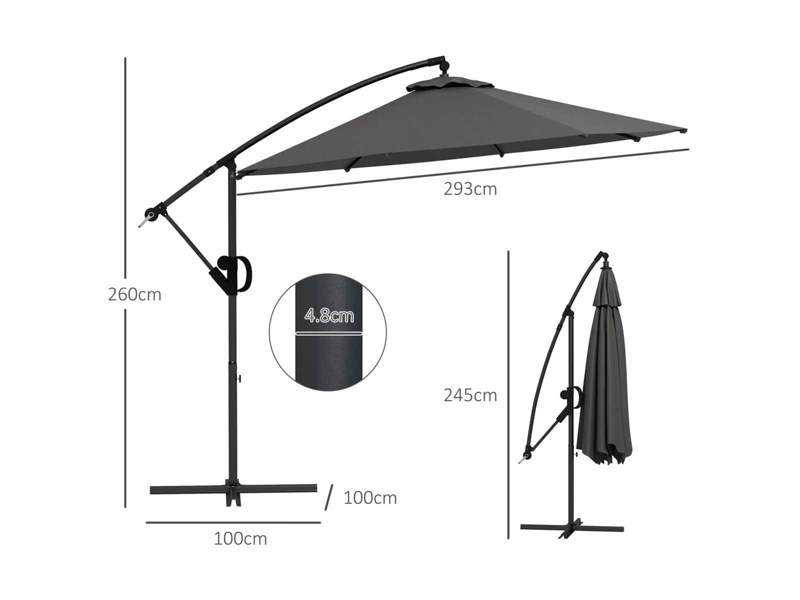 Zweefparasol, incl. kruisvoet, 293 x 293 x 260 cm, grijs