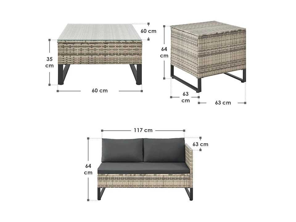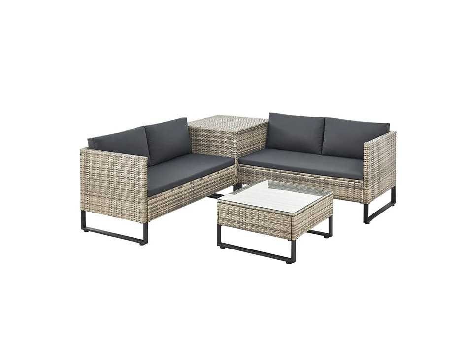 Modulaire polyrotan lounge voor 4 personen met tafel en kussenbox