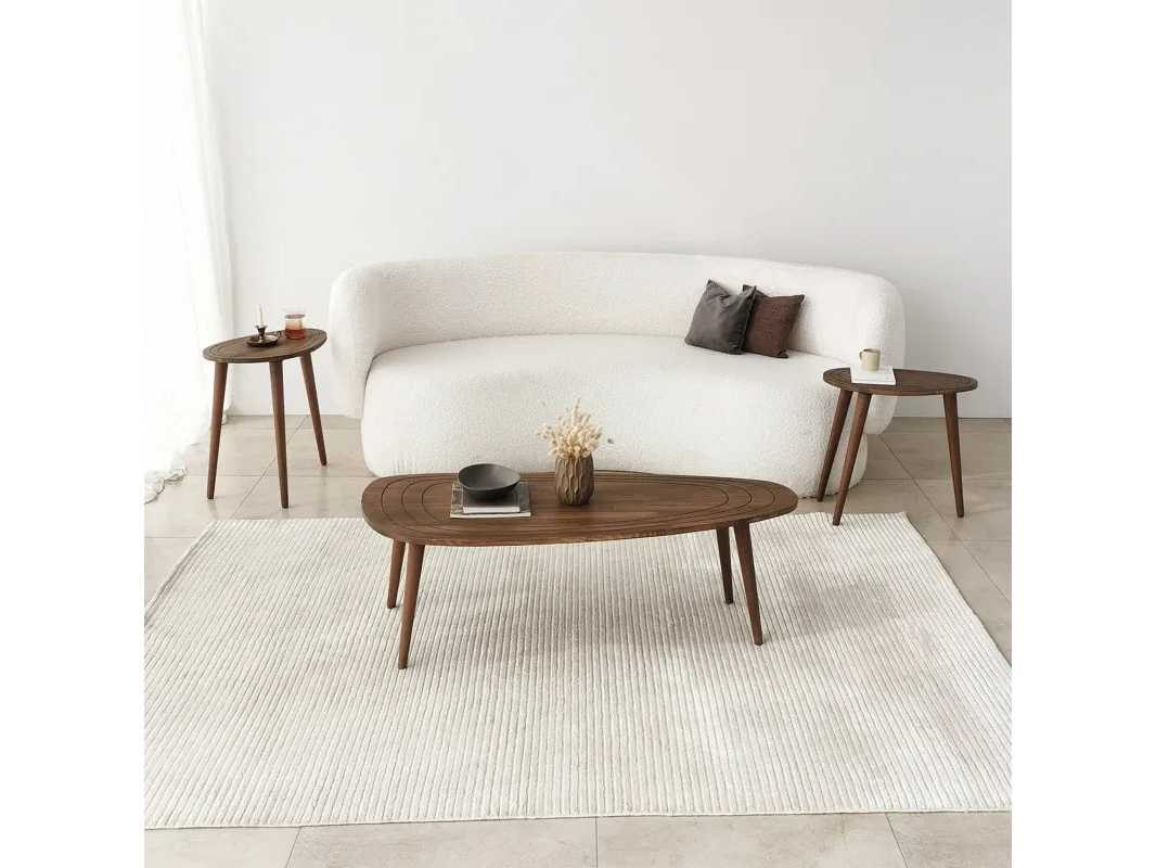 Onregelmatige ovale salontafel. Gemaakt van massief hout met een walnoot afwerking. De afmetingen zijn 115 cm breed, 38 cm hoog en 50 cm diep. Deze tafel is perfect voor het creëren van een gezellig hoekje in je woonkamer of ontspanningsruimte. Geleverd in één pakket. Non Breedte: 115cm Hoogte: 50cm