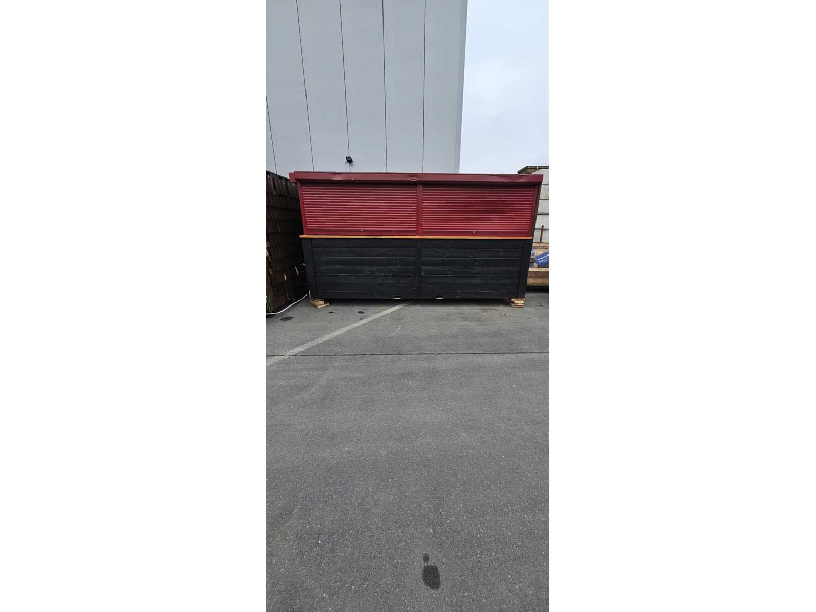 Nee Product type: Chalet Kleur: Rood/zwart Lengte: 460cm Breedte: 260cm Hoogte: 240cm