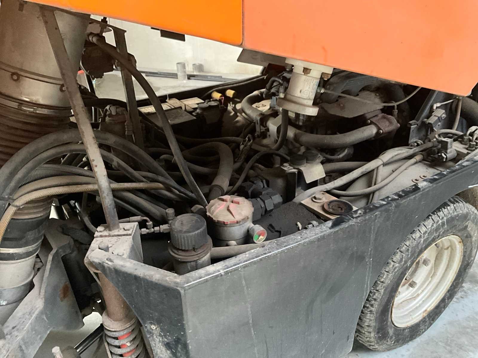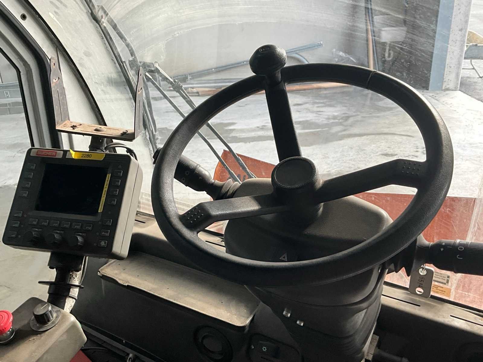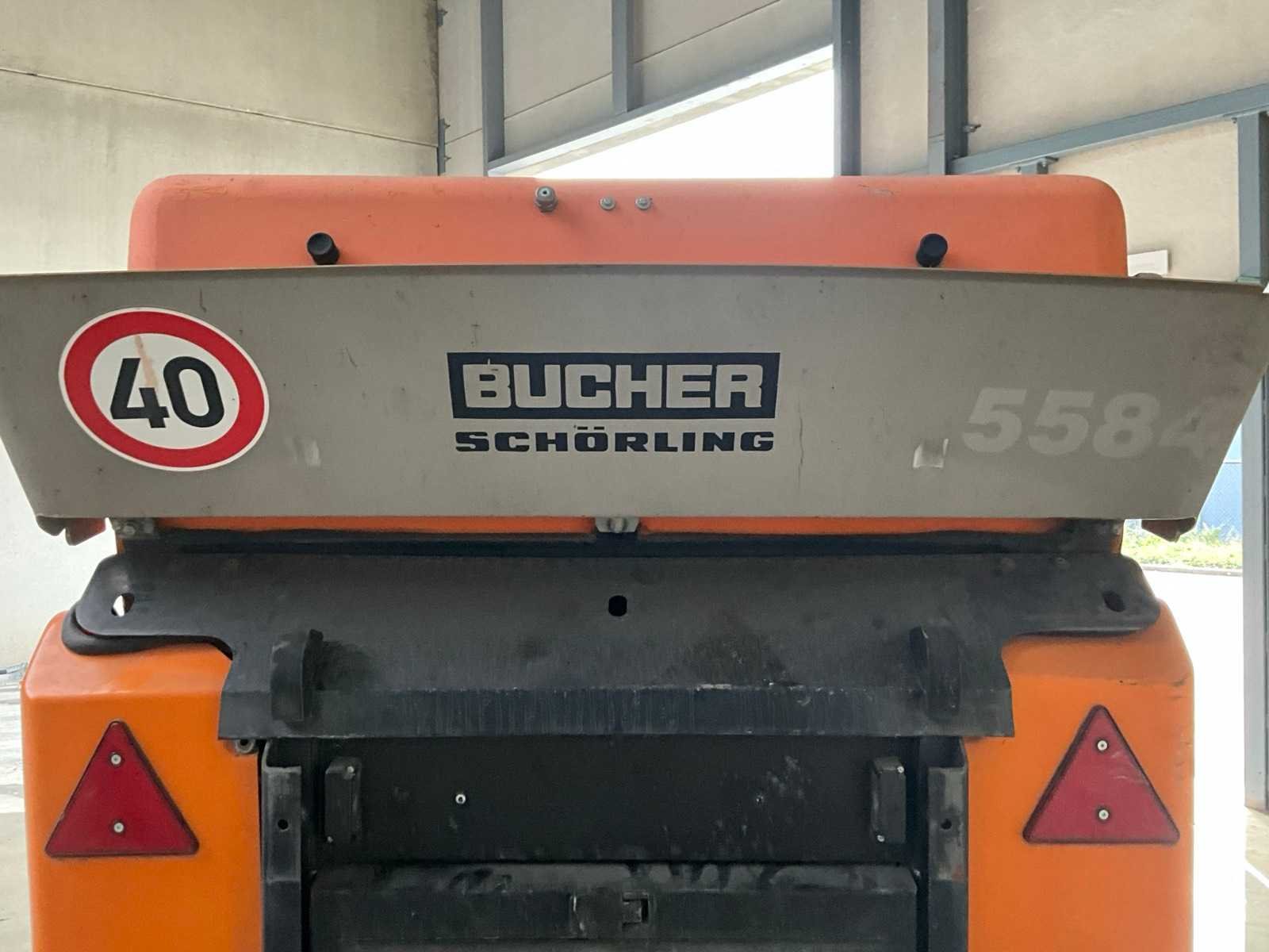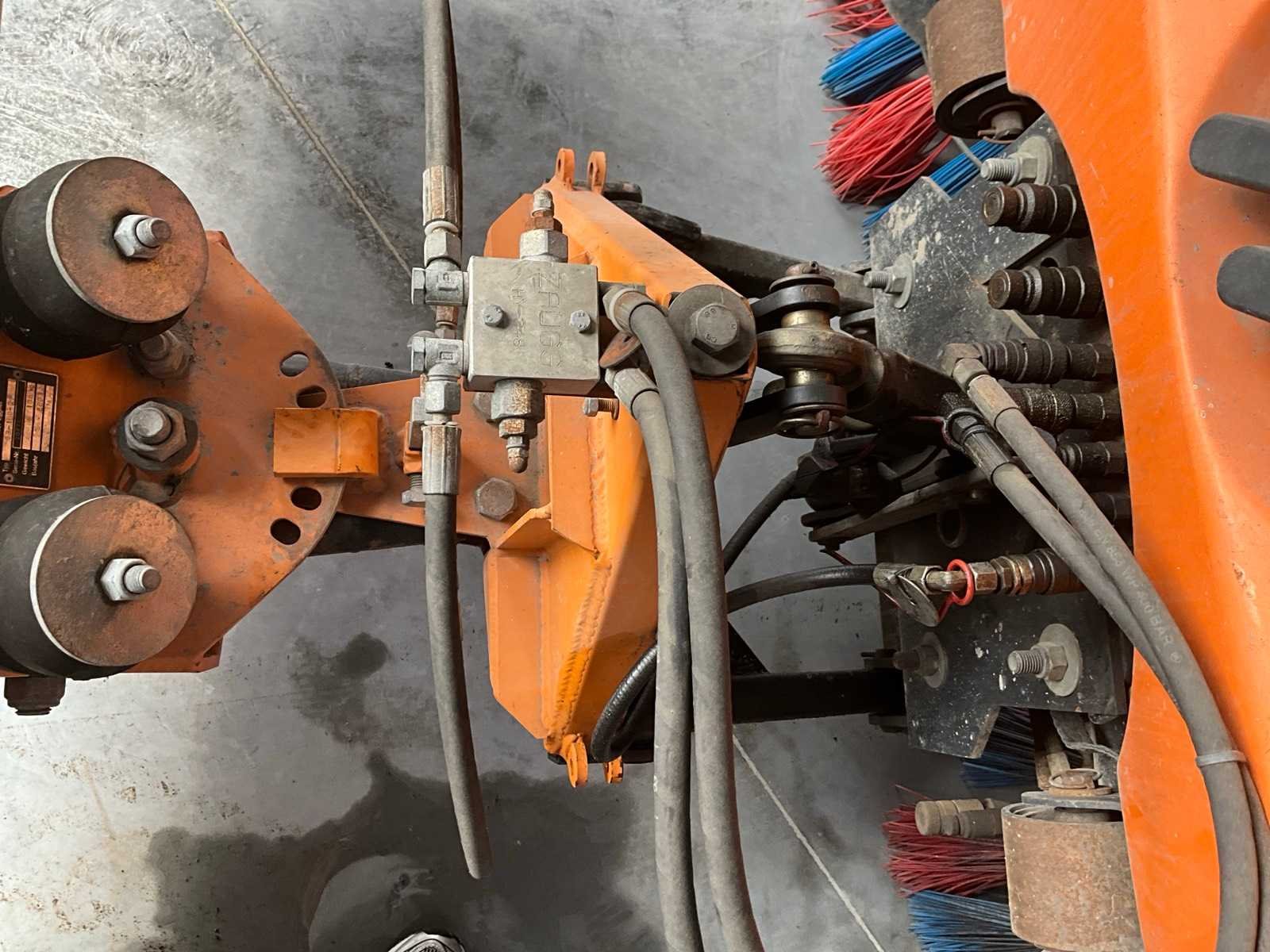 Professionele compacte straatveegmachine van Bucher Schörling, type CityCat 2020, voorzien van dubbele borstels, zuigsysteem, watertank en Zaugg sneeuwploeg (type G3-160-2, bouwjaar 2003). Machine geschikt voor zowel zomer- als winterdienst – ideaal voor gemeentelijk, industrieel of terreinonderhoud - Veegsysteem: 2 zijborstels met verstelbare armen, Centrale zuigmond, Waternevelsysteem tegen stofvorming - Cabine: Gesloten cabine met verwarming, panoramisch zicht, bedieningspaneel en comfortstoel - Extra’s: Zwaailicht, Spiegelset, Werkverlichting, Compacte draaicirkel - werkt (zie video) Nee Merk: Bucher Type: CityCat 2020 Bouwjaar: 2002 Brandstofmotor aangedreven: true Eigen gewicht: 3000kg Inhoud waterreservoir: 300l Totale afmeting L: 3800mm Totale afmeting Breedte: 1300mm Totale afmeting Hoogte: 2000mm