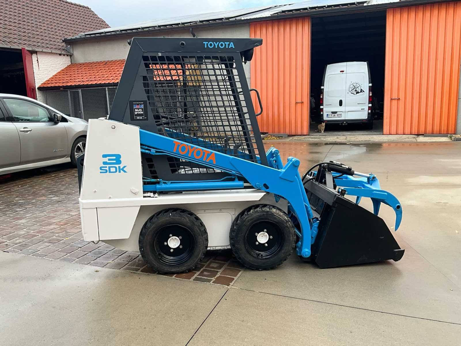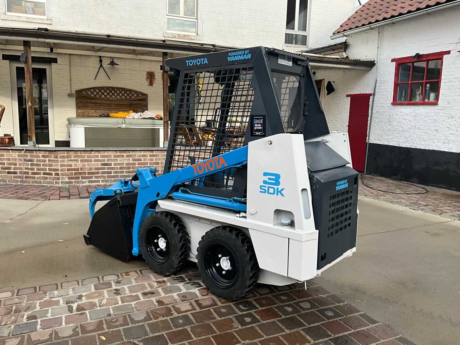 Merk: Toyota Model: SDK3 Skid Steer Loader Motor: Yanmar dieselmotor Vermogen: ± 25–30 pk Gewicht: ca. 1.300 kg Laadcapaciteit: ca. 350 kg Aandrijving: hydrostatisch op 4 wielen Hydraulische grijpbak inbegrepen ROPS-veiligheidskooi Compacte, wendbare machine – ideaal voor landbouw, bouw en terreinwerk Machine in nette, verzorgde staat – recent geschilderd Japanse kwaliteit – Toyota & Yanmar combinatie No Merk: Toyota Type: SDK3 Skid Steer Loader Merk motor: Yanmar Brandstof: Diesel