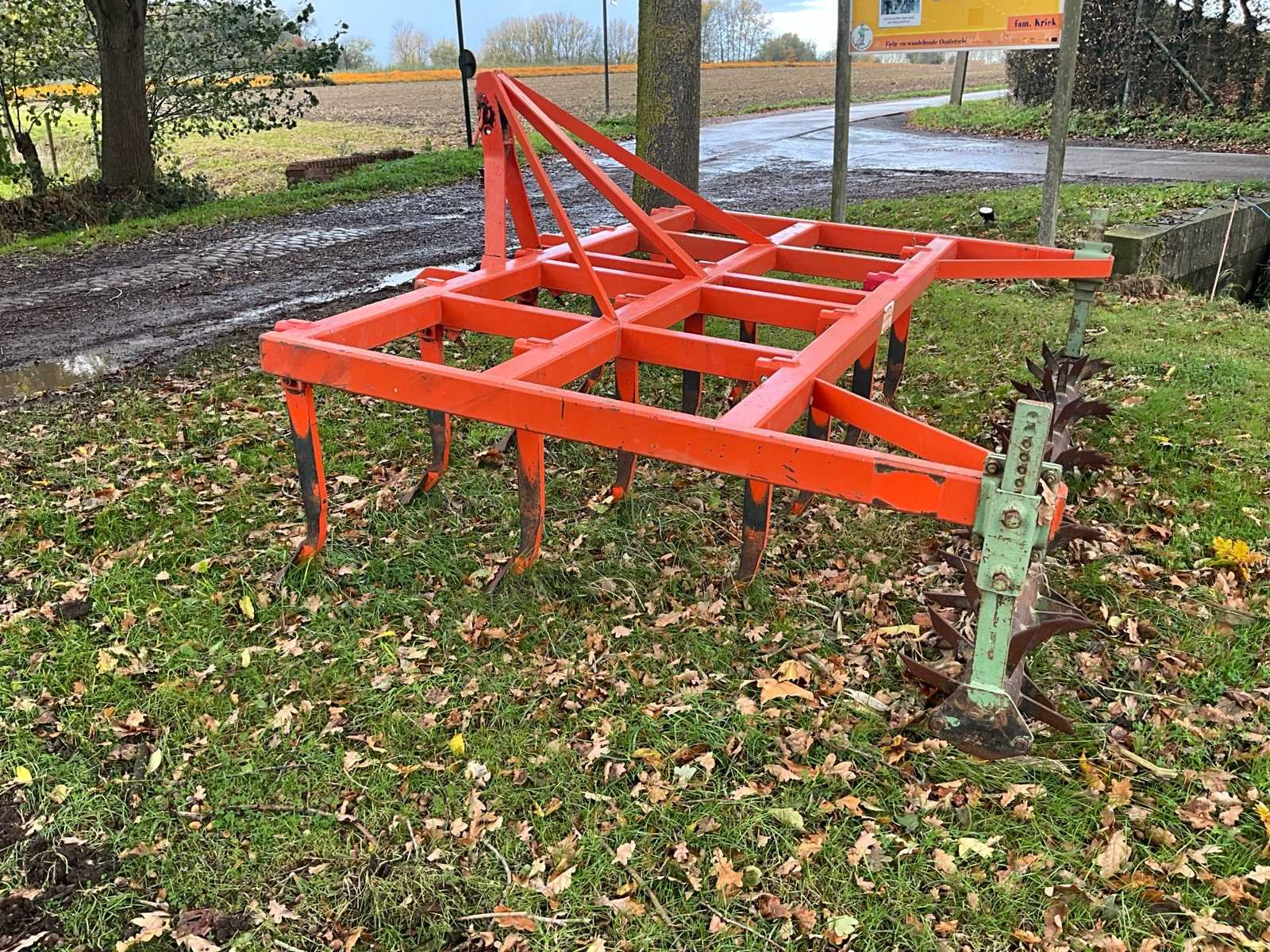 Merk: AERMEZZA Type: Cultivator met verkruimelrol Werkbreedte: ca. 2,5 meter Aantal tanden: 9 Achterzijde voorzien van stalen verkruimelrol Geschikt voor 3-puntsaanhechting CAT II Degelijke zware constructie, geschikt voor akkerbouw of graslandbewerking Machine in nette en gebruiksklare staat No Merk: Aermezza