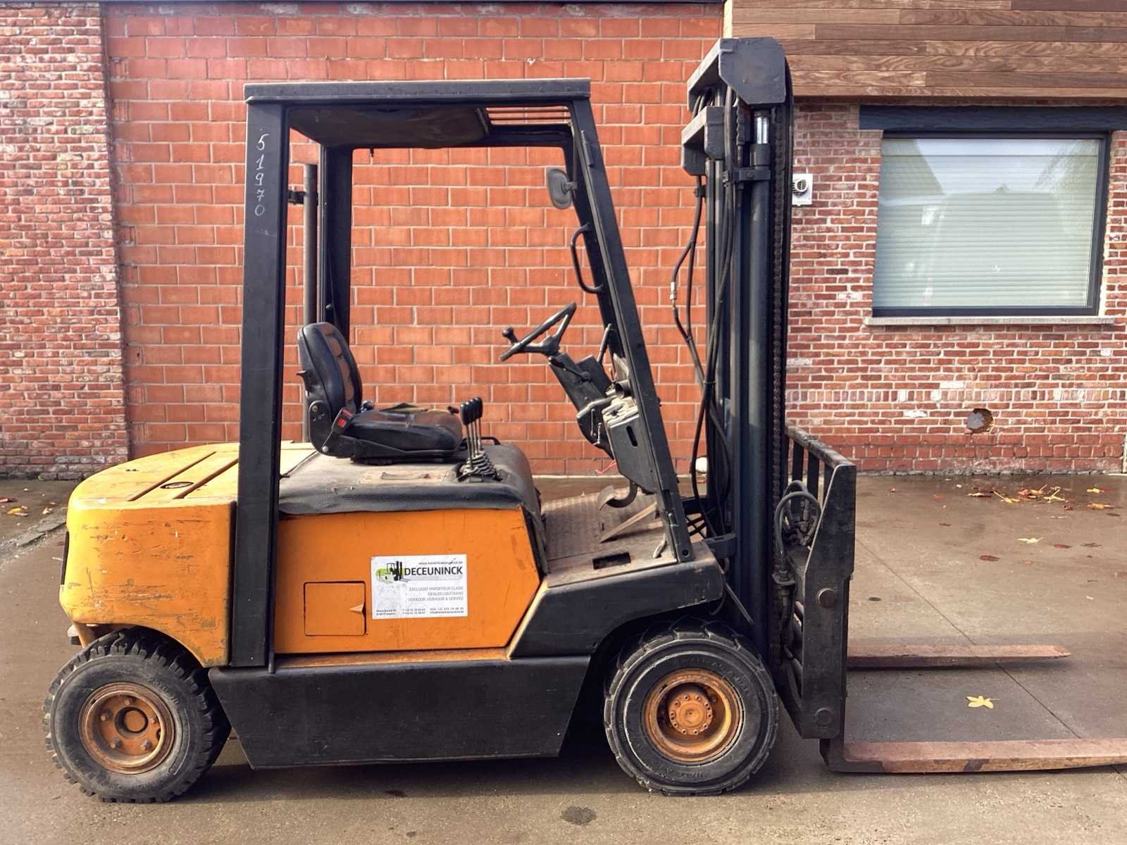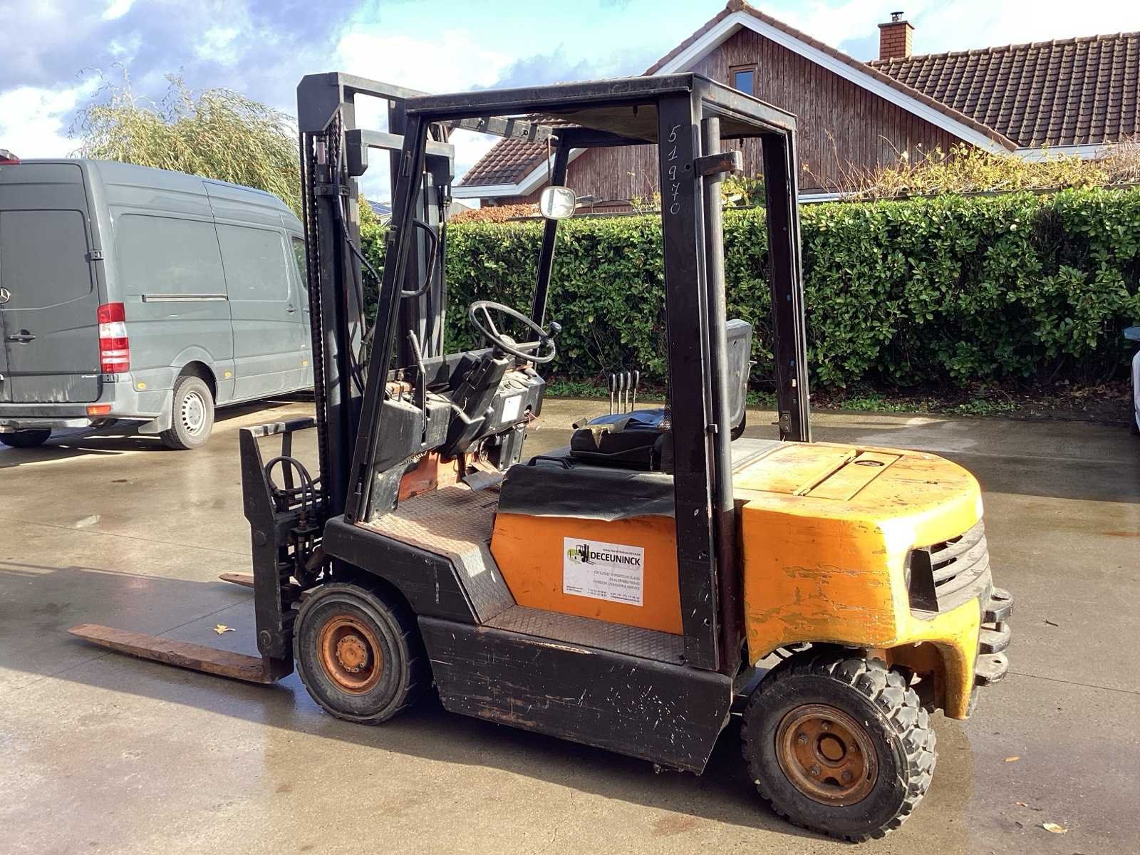 Diesel heftruck still met mercedes dieselmotor Werkt perfect maar heeft wat aandacht nodig Dichting aan dieselfilter te vervangen Schakelaar gloeibougies te vervangen Nee Merk: Still Type: Dfg 2,5 Bouwjaar: 1984 Serienummer: 70030956 Brandstof: Diesel Mast: Triple Soort band: Volrubber banden Aantal wielen: 4 Afgelezen urenstand: 9763 Side-shift: true Hydraulisch verstelbare lepels: true Duplex mast: true Eigen gewicht: 3827kg Hefvermogen: 2500kg Lepellengte: 1200mm Max. hefhoogte: 3400mm Minimale doorrijhoogte: 2400mm Totale afmeting L: 3800mm Totale afmeting Breedte: 1200mm Diesel: true