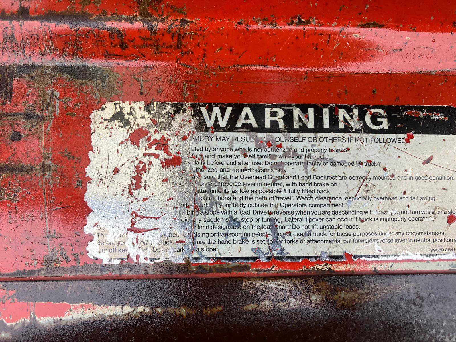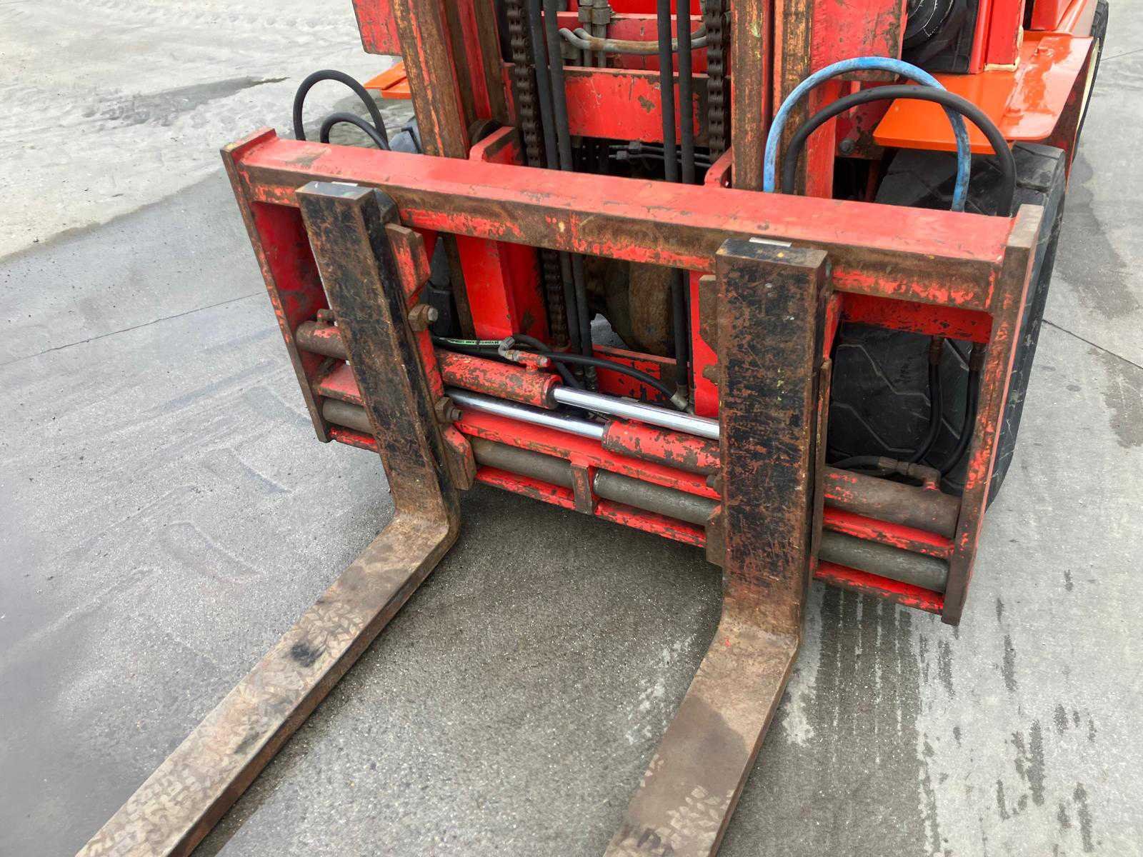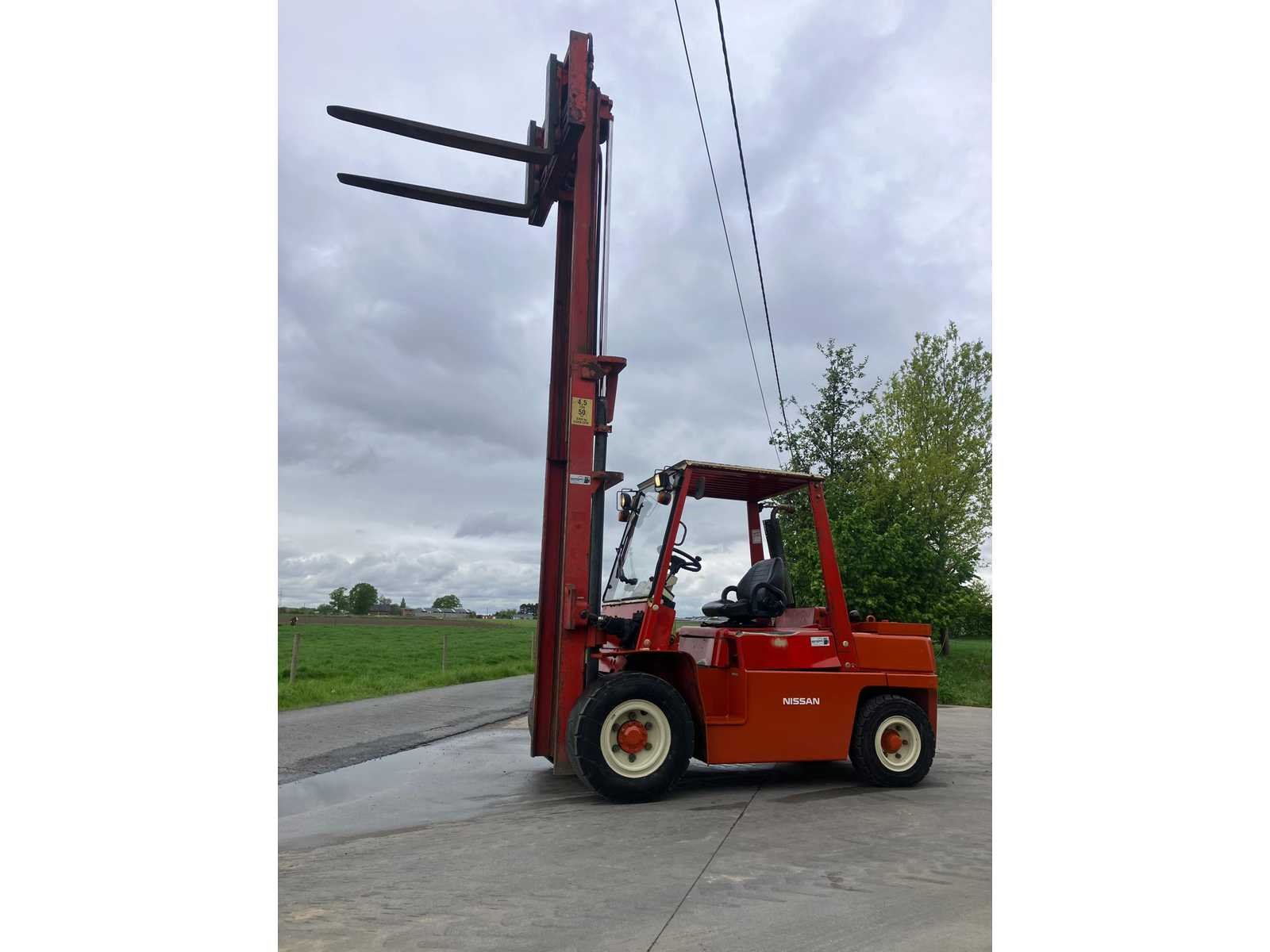 No Merk: Nissan Type: D1ZWGF03A40U Bouwjaar: 1994 Serienummer: WGF03E002164 Brandstof: Diesel Mast: Duplex Soort band: Luchtbanden Aantal wielen: 4 Afgelezen urenstand: 1134 Side-shift: true Hydraulisch verstelbare lepels: true Duplex mast: true Eigen gewicht: 6710kg Hefvermogen: 4500kg Lepellengte: 1600mm Max. hefhoogte: 4500mm Hefhoogte: 4500mm Luchtbanden: true Totale afmeting L: 3200mm Totale afmeting Breedte: 1500mm Totale afmeting Hoogte: 3000mm Diesel: true