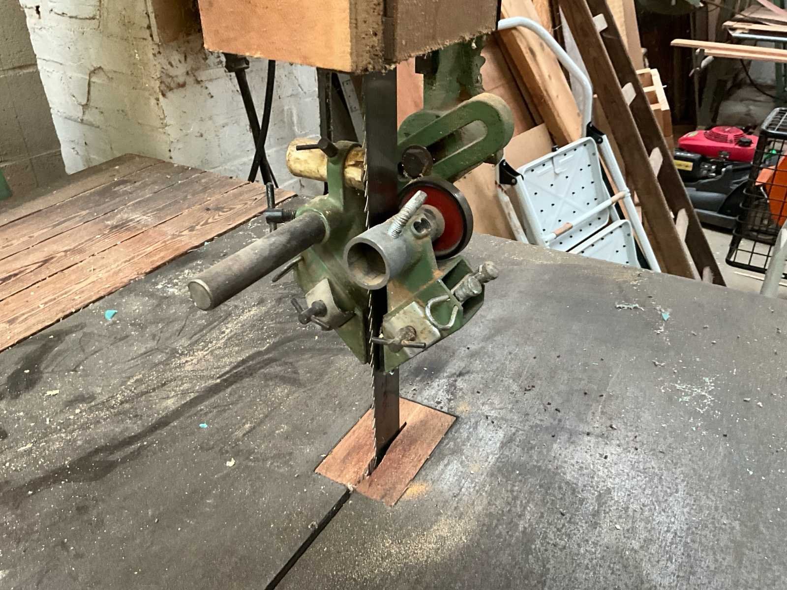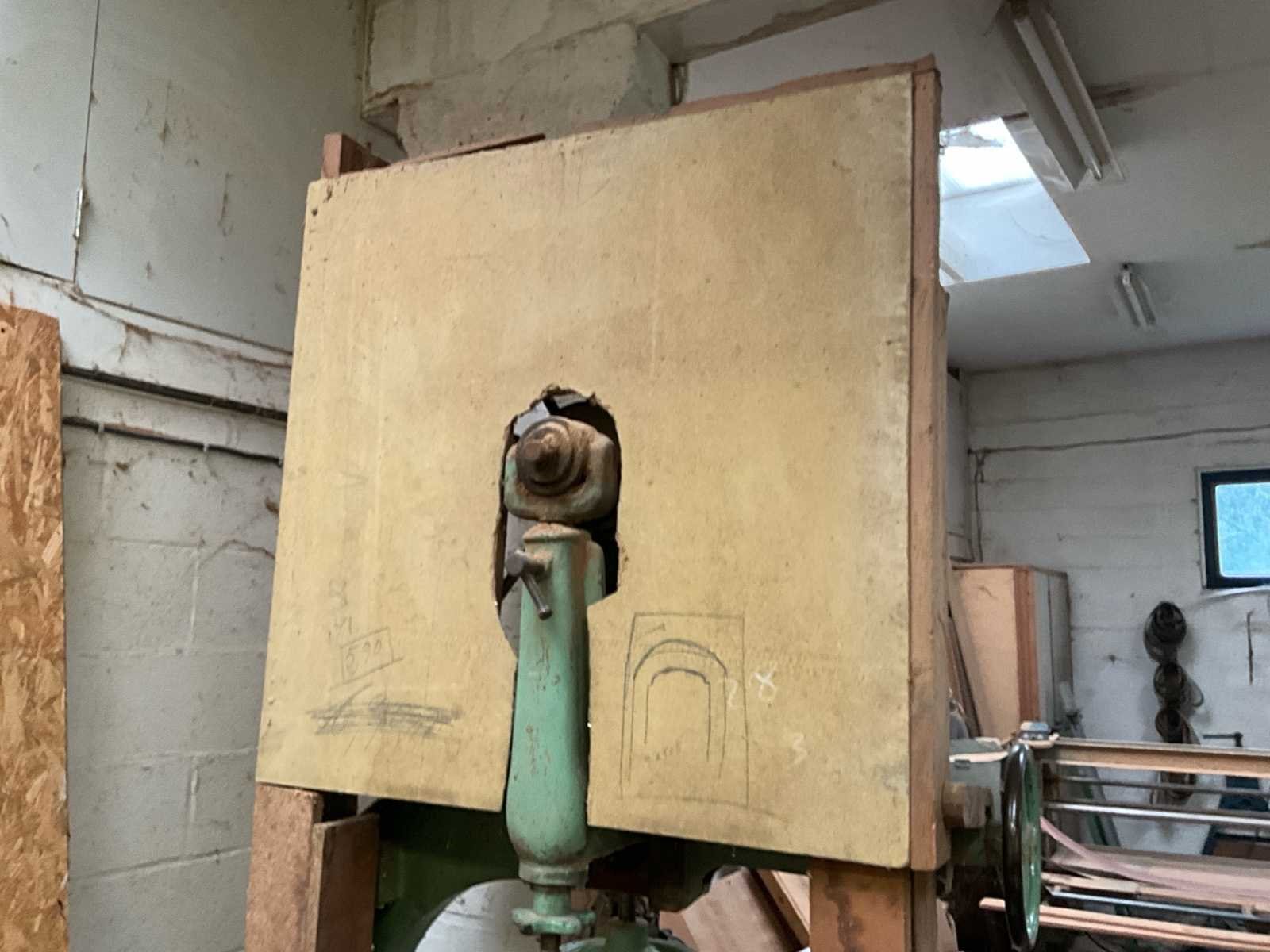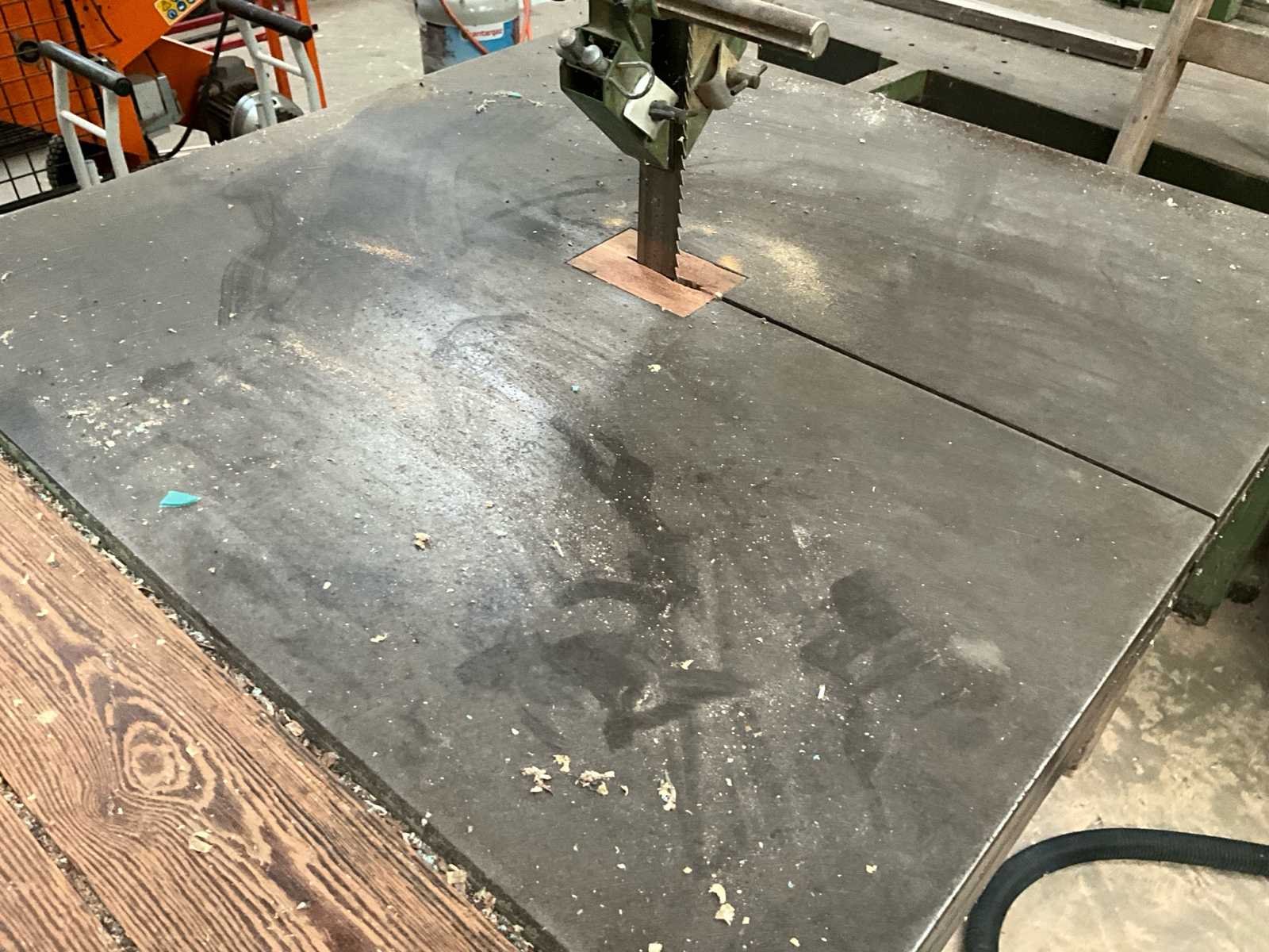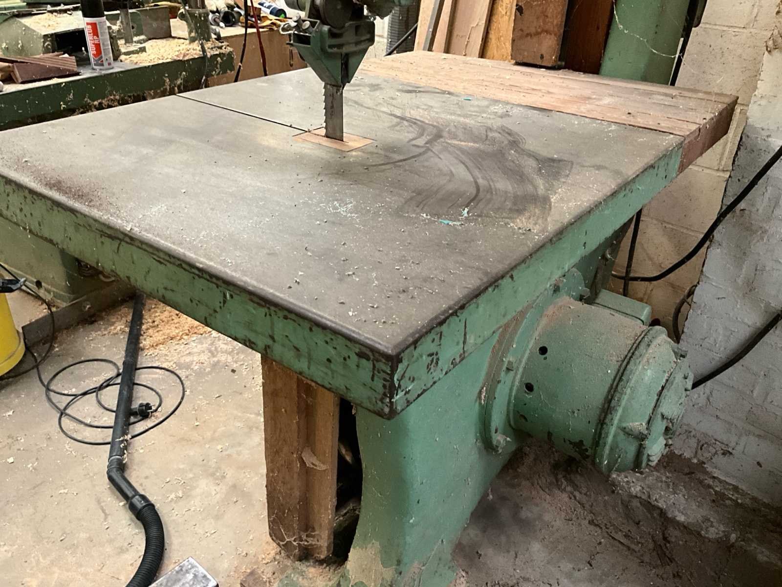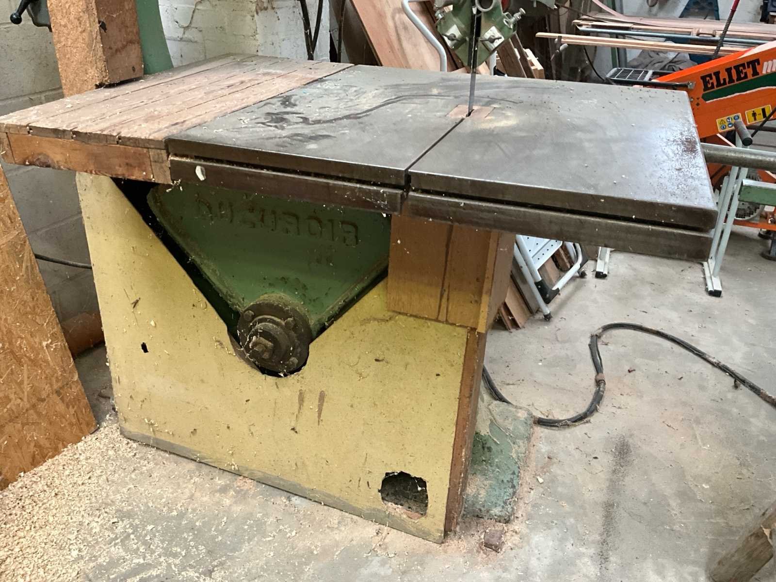 Merk: Ducuroir – Bruxelles (Machines à Bois) • Model: 831 • Type: industriële lintzaagmachine • Voeding: 3-fase 380 V • Bouwperiode: ca. 1960-1970 • Zaaghoogte (onder/over tafel): ± 300-350 mm • Zaagbreedte (afstand tussen lint en kolom): ± 500-600 mm • Tafel: gietijzeren kantelbare zaagtafel • Aandrijving: elektromotor via V-snaar (vermoedelijk 2 à 3 pk) • Frame: zware gietijzeren constructie • Gebruik: zagen van massief hout, balken, platen, gebogen vormen • Land van herkomst: België No Merk: Ducuroir Type: 831