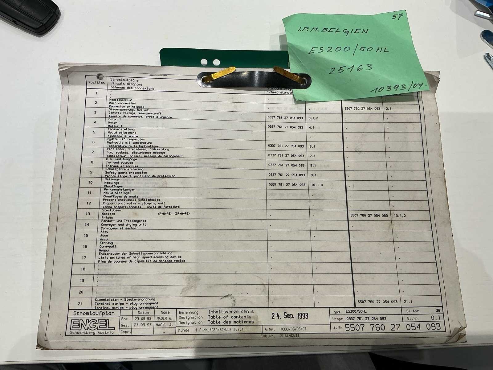 Geen matrijzen inclusief , wel handleiding erbij + elektrisch schema No Merk: Engel Type: ES 200/50HL Bouwjaar: 1993 Digitale besturing: true Machinegewicht: 3200kg