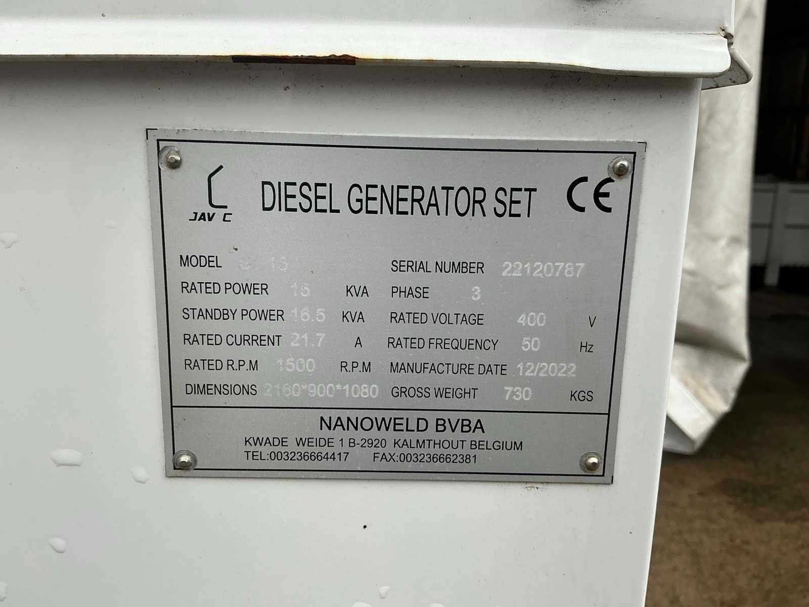 Demo model met 7 draai uren vorklift aanwezig om te laden indien gewenst Nee Merk: Javac Type: SL15 Bouwjaar: 2022 Serienummer: 22120787 Capaciteit.: 15kVA Diesel: true Type motor: Hyundai OEM Motorvermogen (kW): 17kW Watergekoeld: true Afgelezen urenstand: 7 Machinegewicht: 730kg Totale afmeting L: 2160mm Totale afmeting Breedte: 900mm Totale afmeting Hoogte: 1080mm